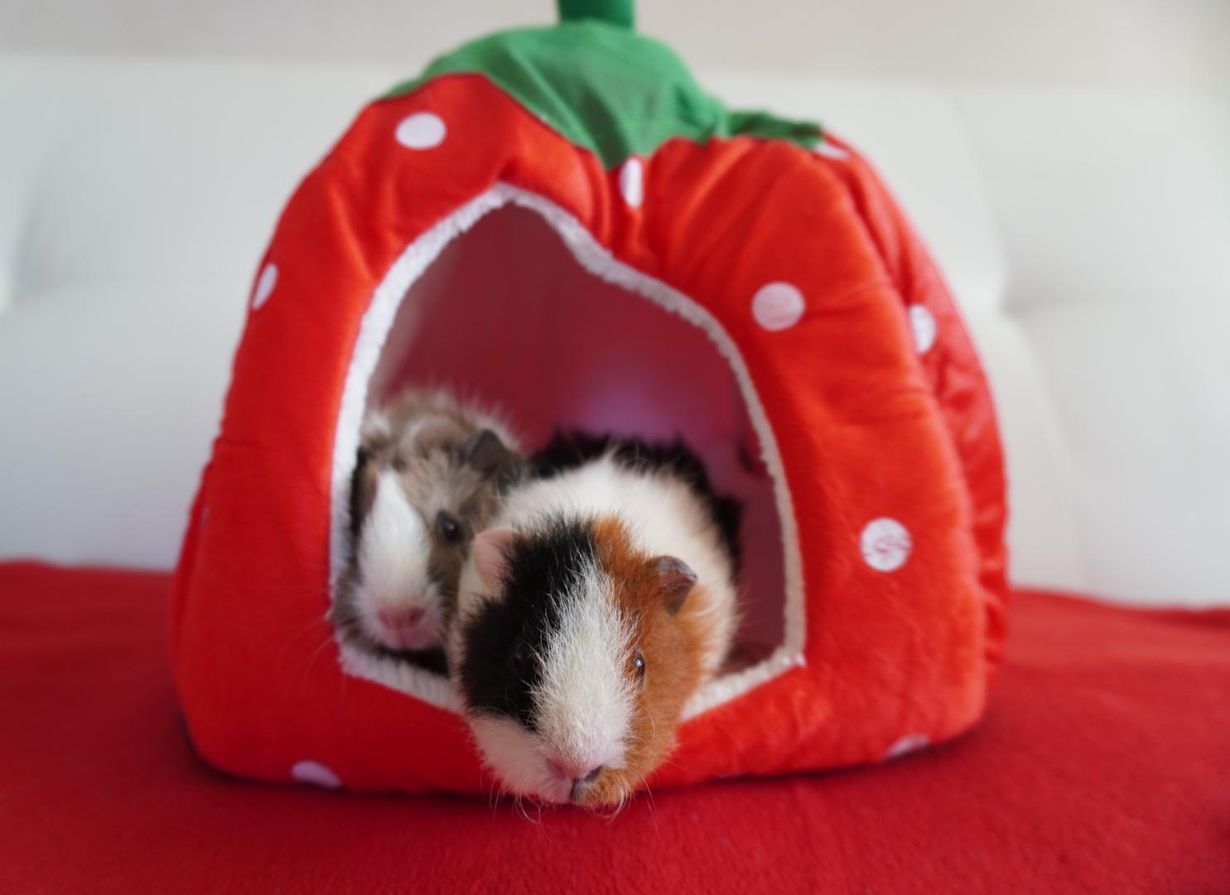 Helmin ja Iineksen yöpeti on sahanpurupohjaisessa, puisessa pesämökissä, mutta pikkuiset rakastavat matalia "huvimajoja".