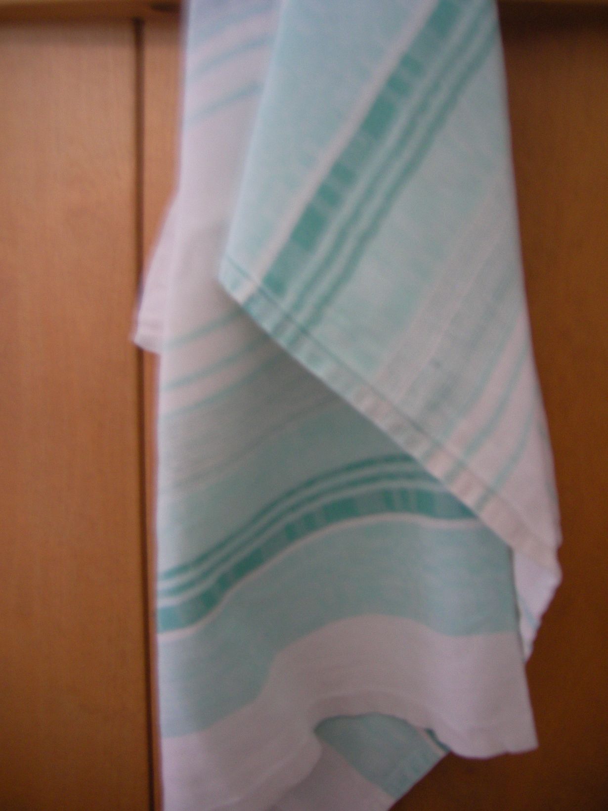 Muisto ajoilta, kun lähdin kotoa opiskelemaan. Pyyhkeet ovat olleet kovassa käytössä, mutta osa on vielä ehjiä ja käytössä.