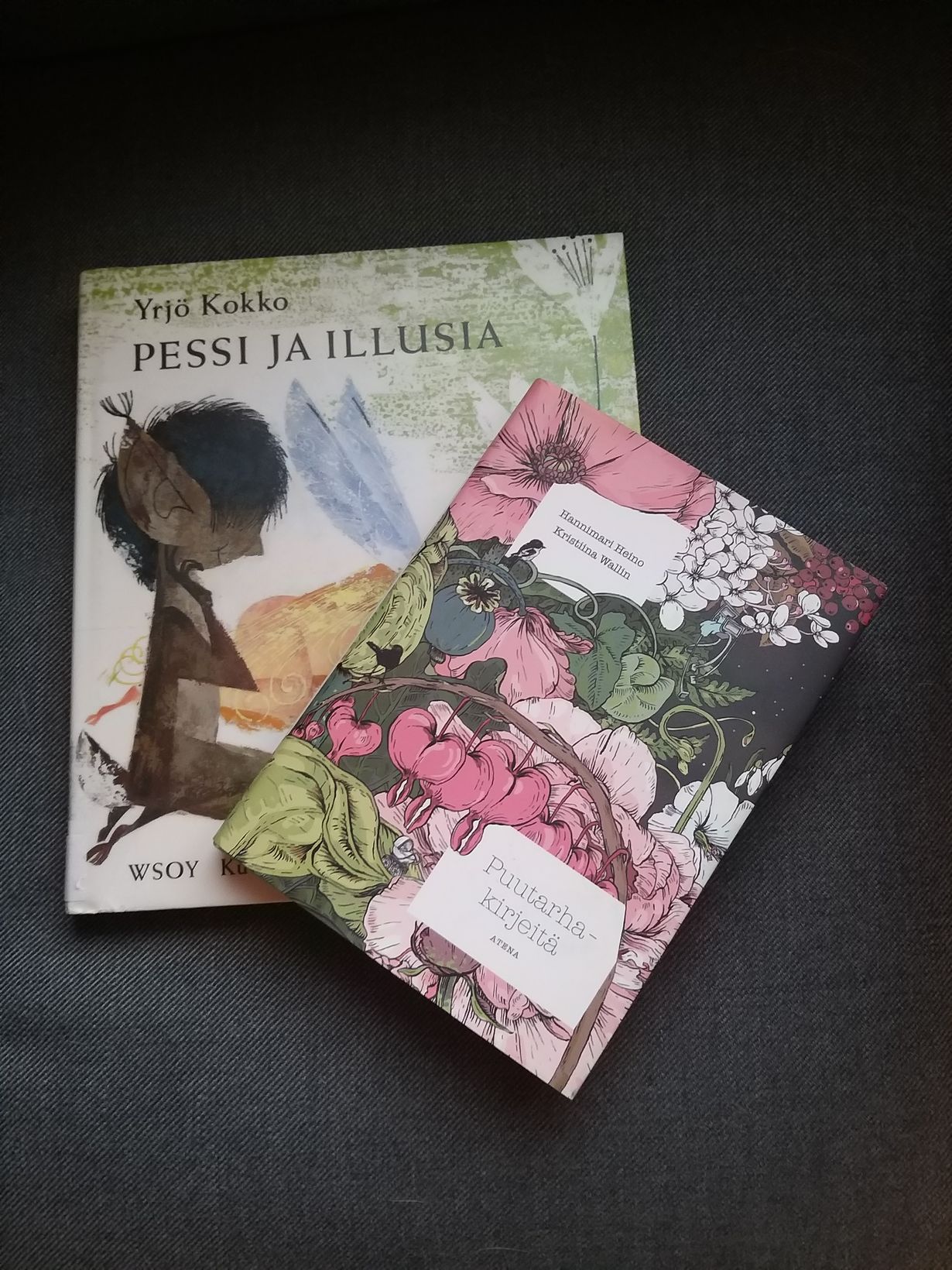 Nämä kirjat olen saanut lahjoina lapsiltani. Pessin ja Illuusian tarina on tärkeä jo lapsuudesta ja Puutarhakirjeiden parissa irtautuu omasta arjesta mukavalla tavalla. Näitä luen herkutellen, säästellen sivuja mahdollisimman kauan. Dekkareita ahmin säästelemättä.