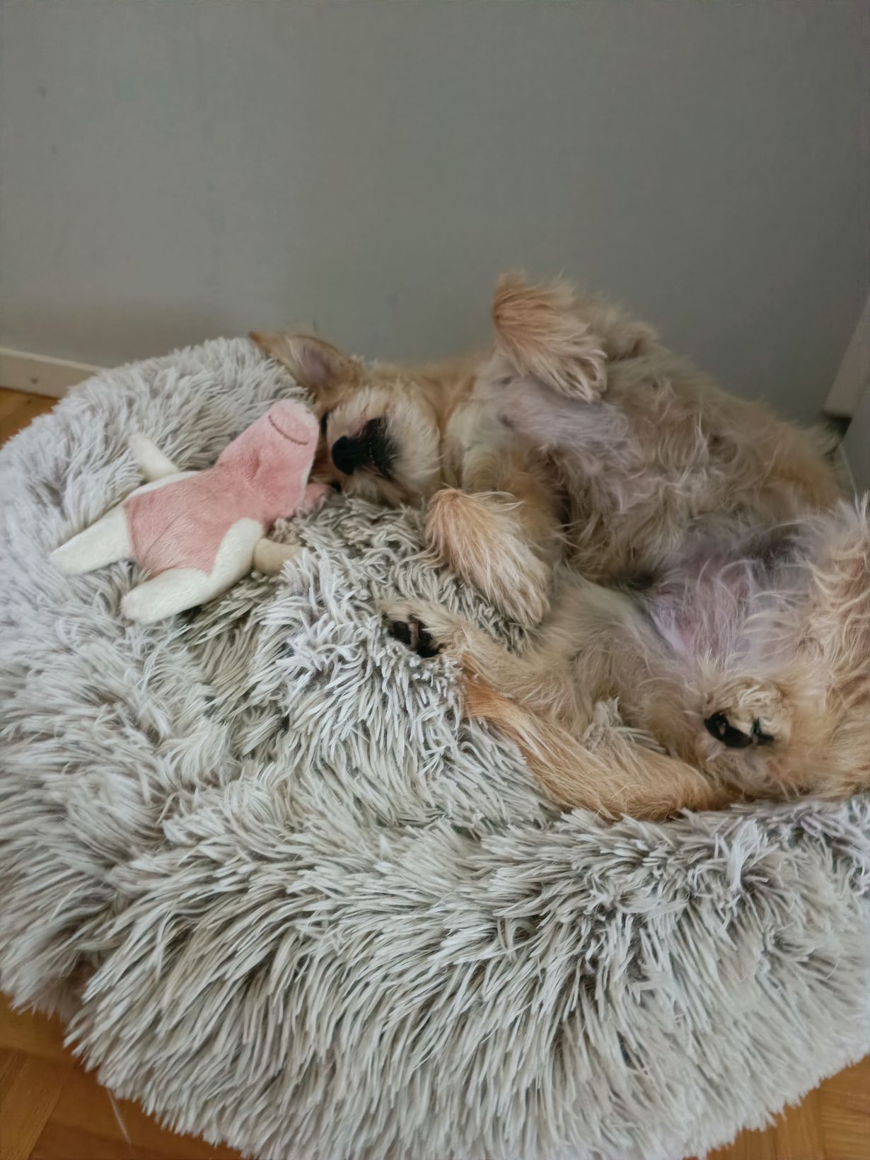 Oli meille arvoitus nukkuisiko Liettuasta adoptoitu rescue koiramme pörröpedillään lainkaan. Siitä tuli kuitenkin Hertan lempi päikkäripaikka, jonne viedään välillä myös unilelu kaveriksi.