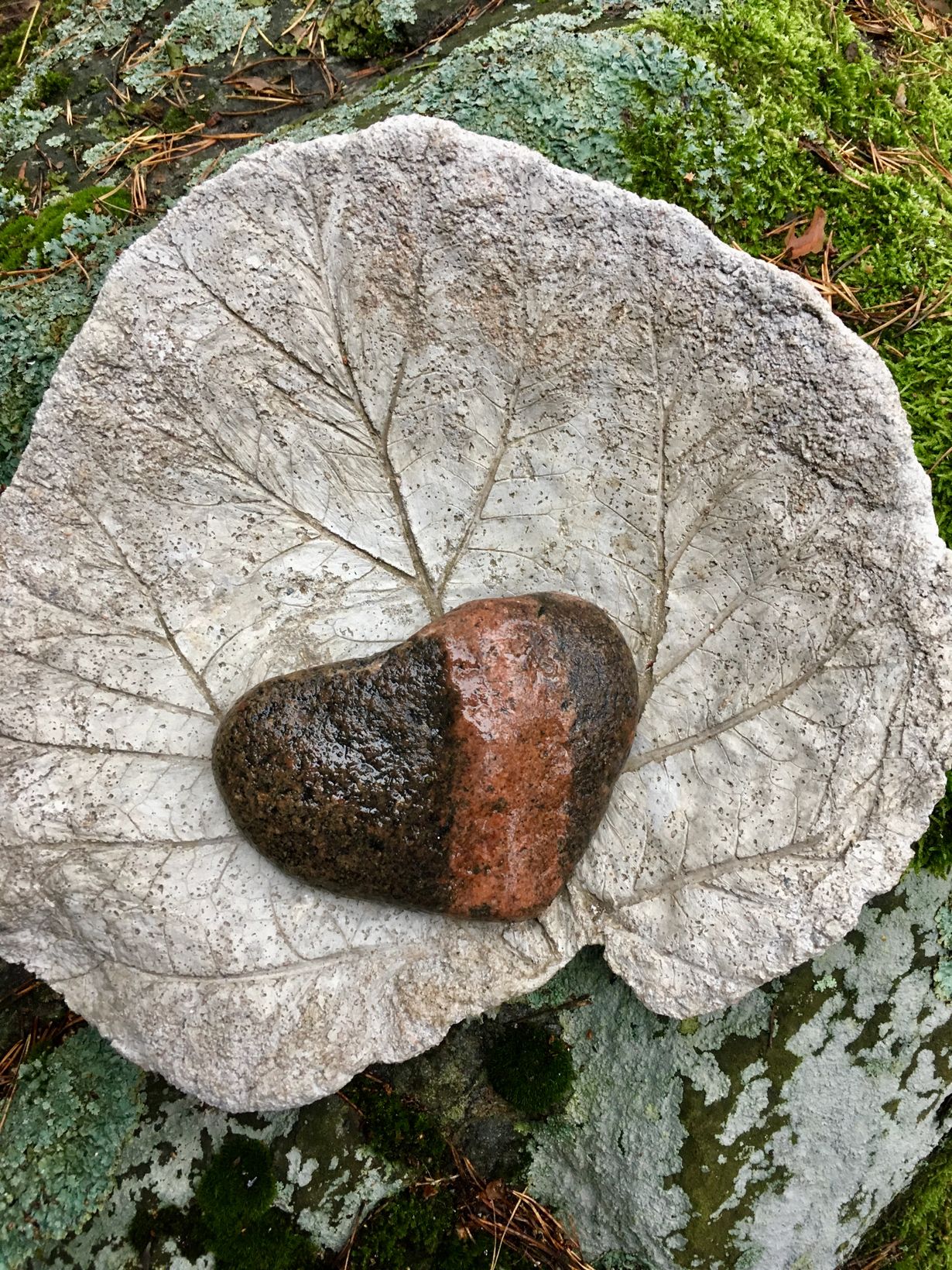 Tämä kivisydän tulla tupsahti pihallemme hiekkakuorman mukana. Sydämen keskellä kulkee kaunis Roosa nauha pehmentämässä kiven tummuutta. Kivi on toiminut pöytäliinan painona ja katseenvangitsijana erilaisissa asetelmissa. Tänään se löysi paikkansa pihakiven kainalosta.