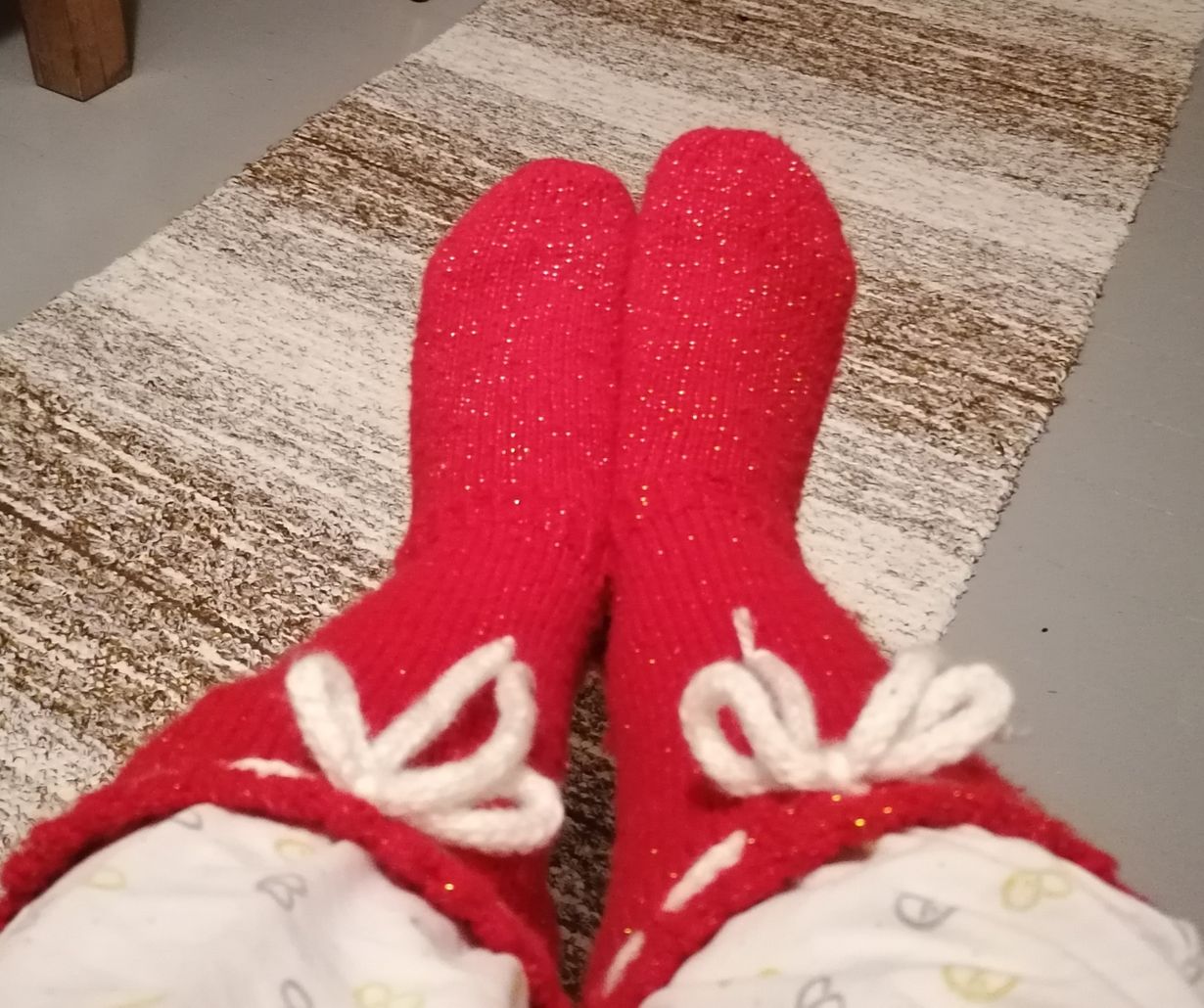 Lähetä kuvakisaan kuva villasukistasi - voita Familonin peitto ja tyyny! Herttaiset joulusukat! Sade 7.8.2022 klo 0:30 Niin mukavat, yösukiksi sopivat pitkävartiset perussukat nirkkoreunalla ja neulotulla punosnauhalla.