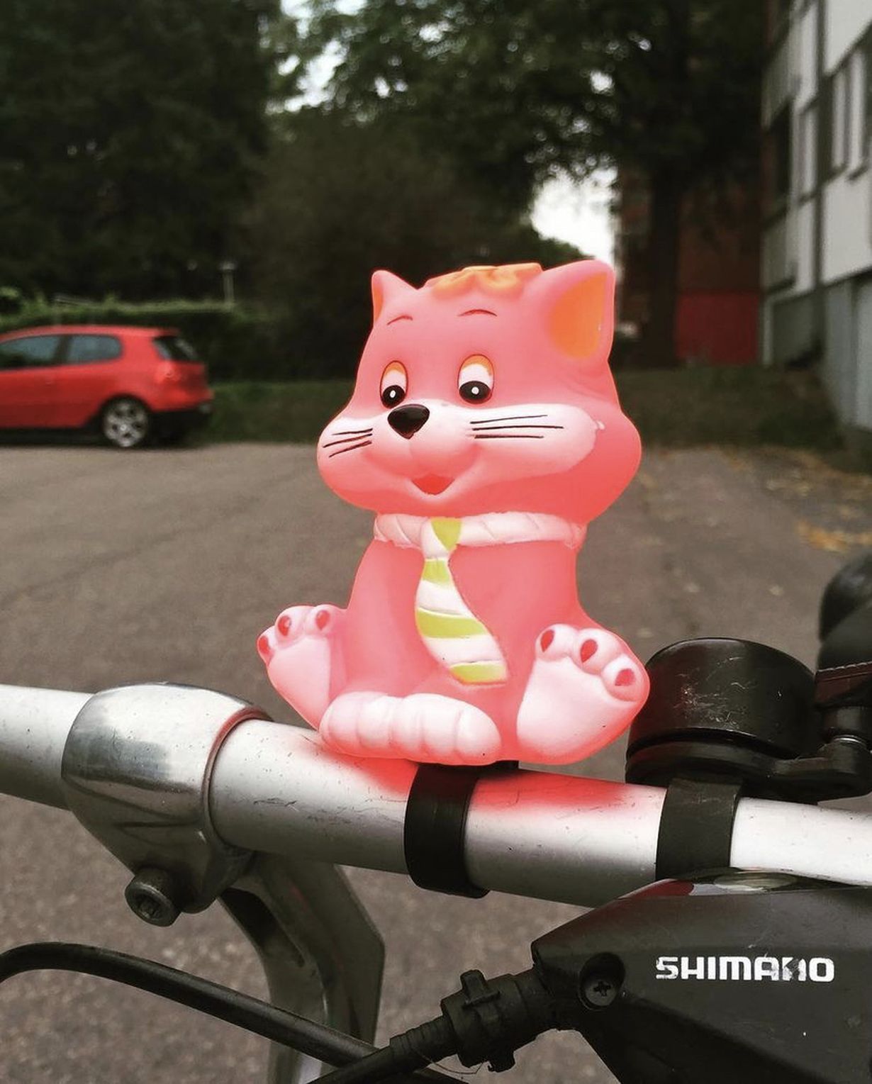 Menopelini on tuikitavallinen ja tylsä harmaa vaihdepyörä, joten tuunasin reissuni hauskemmiksi pinkillä kissitöötillä. Annoin myös pyörälleni nimeksi Ola, The Arkin laulajan mukaan. :D