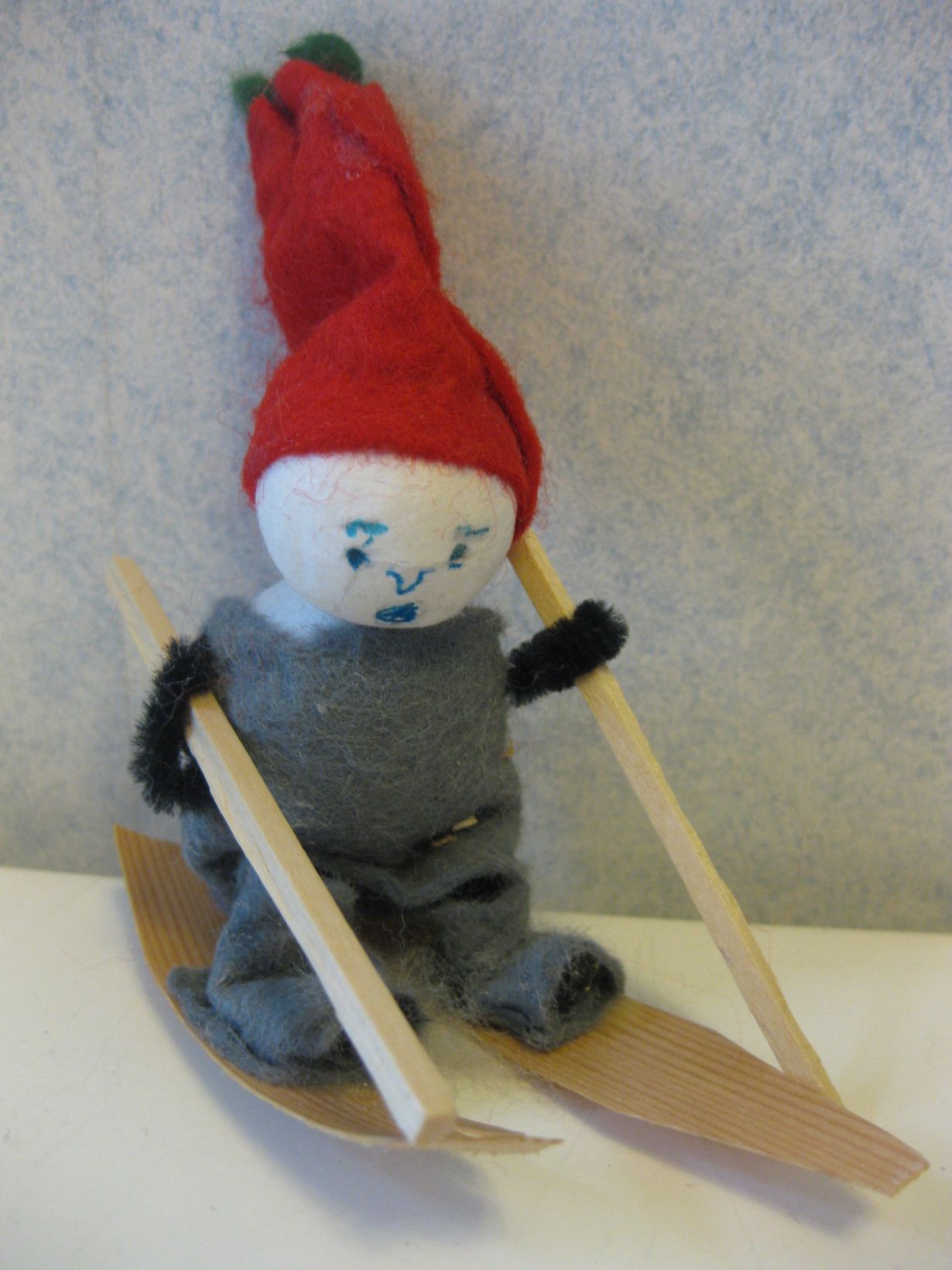 Näitä oppilaitten askartelemia tonttuja hiihtelee joka joulu pöydällämme kymmenkunta.