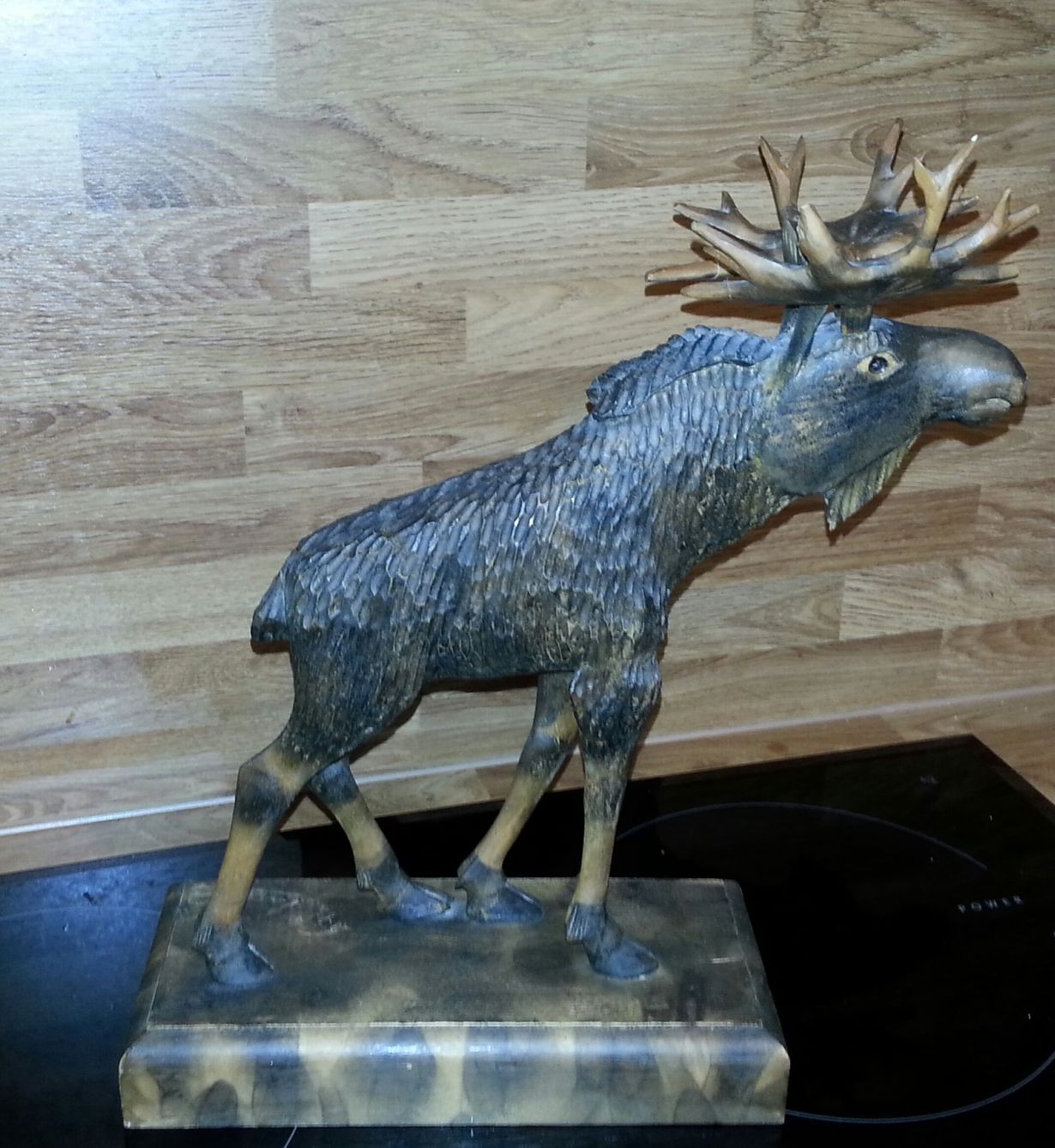 Isäni harrasti 1930- ja 1940- luvuilla painia ja kilpailikin. Tämän hirvipatsaan hän on saanut palkinnoksi. Lapsena inhosin koko patsasta ja varsinkin pölyjen pyyhkimistä sen päältä. Nyt se on kotonani kunniapaikalla ja ihailen sitä aina ohimennessäni eikä pölyjen pyyhintäkään enää vaivaa.