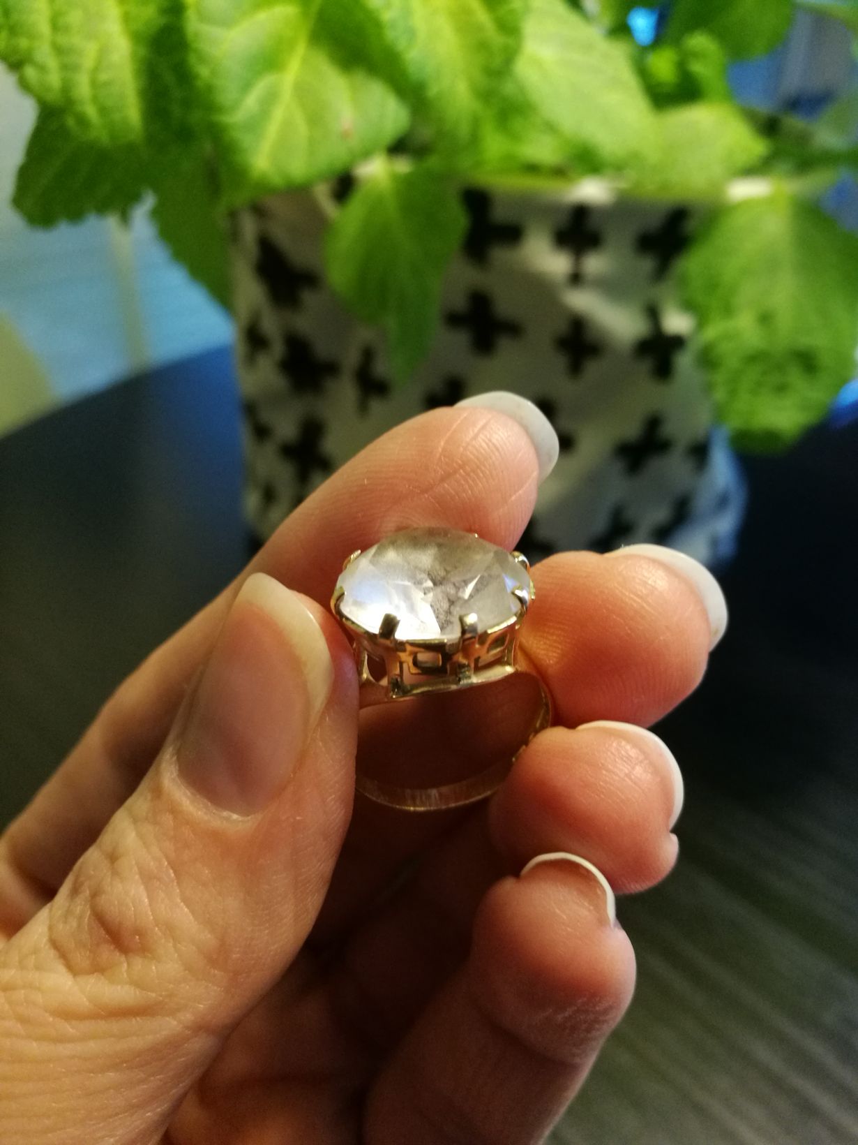 Tämän kultaisen sormuksen olen saanut äidin äidiltäni. Muistan kun mummu joskus käytti vastaavanlaisia näyttäviä sormuksia ja korvakoruja meidän lastenlasten ollessa pieniä. Lapsena ihailin niitä aina ja nyt minulla on yksi niistä ihanuuksista ❤️ Tosin en kyllä raaski sormusta käyttää ?
