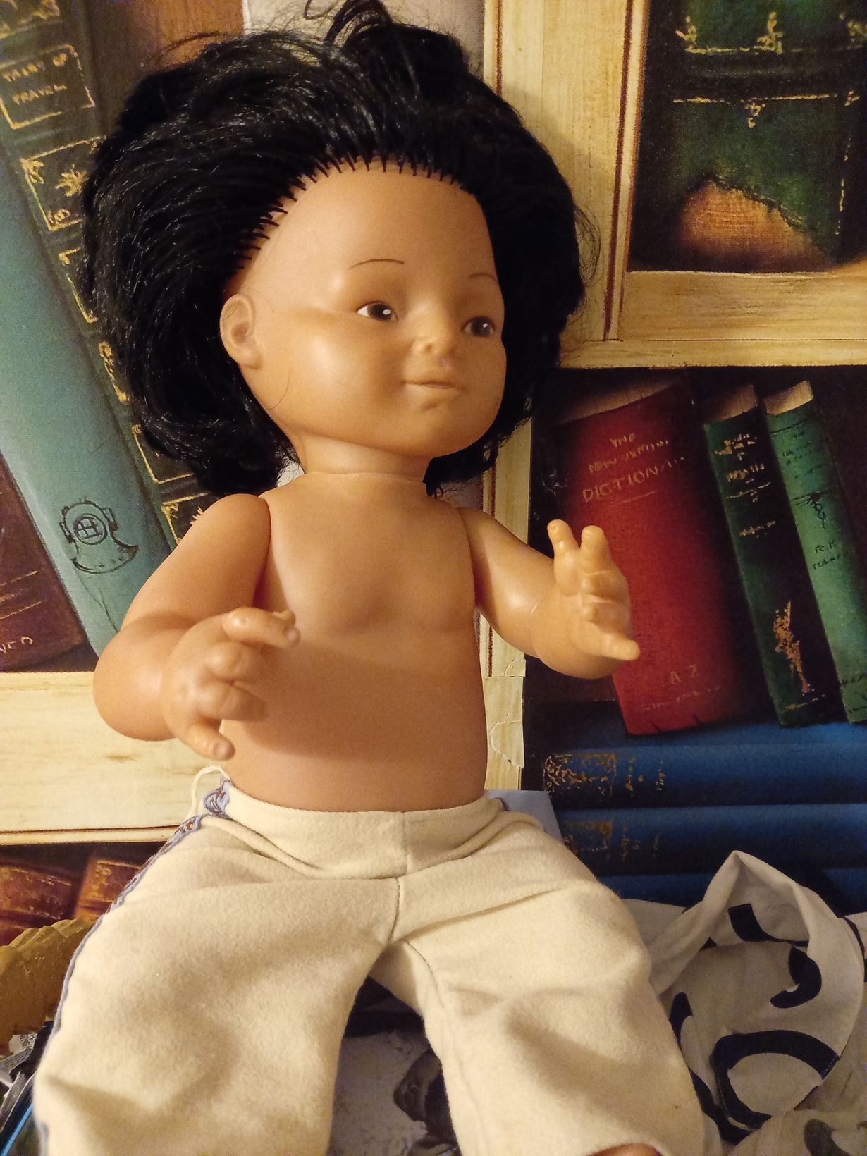 Intiaaninukke pojalleni oli viesti siitä, että ihmiset ovat erilaisia. Hän sai myös intiaanipojasta kertovan tietokirjan hauskoin kuvin. Ei hän kyllä leikkinut nukeilla.