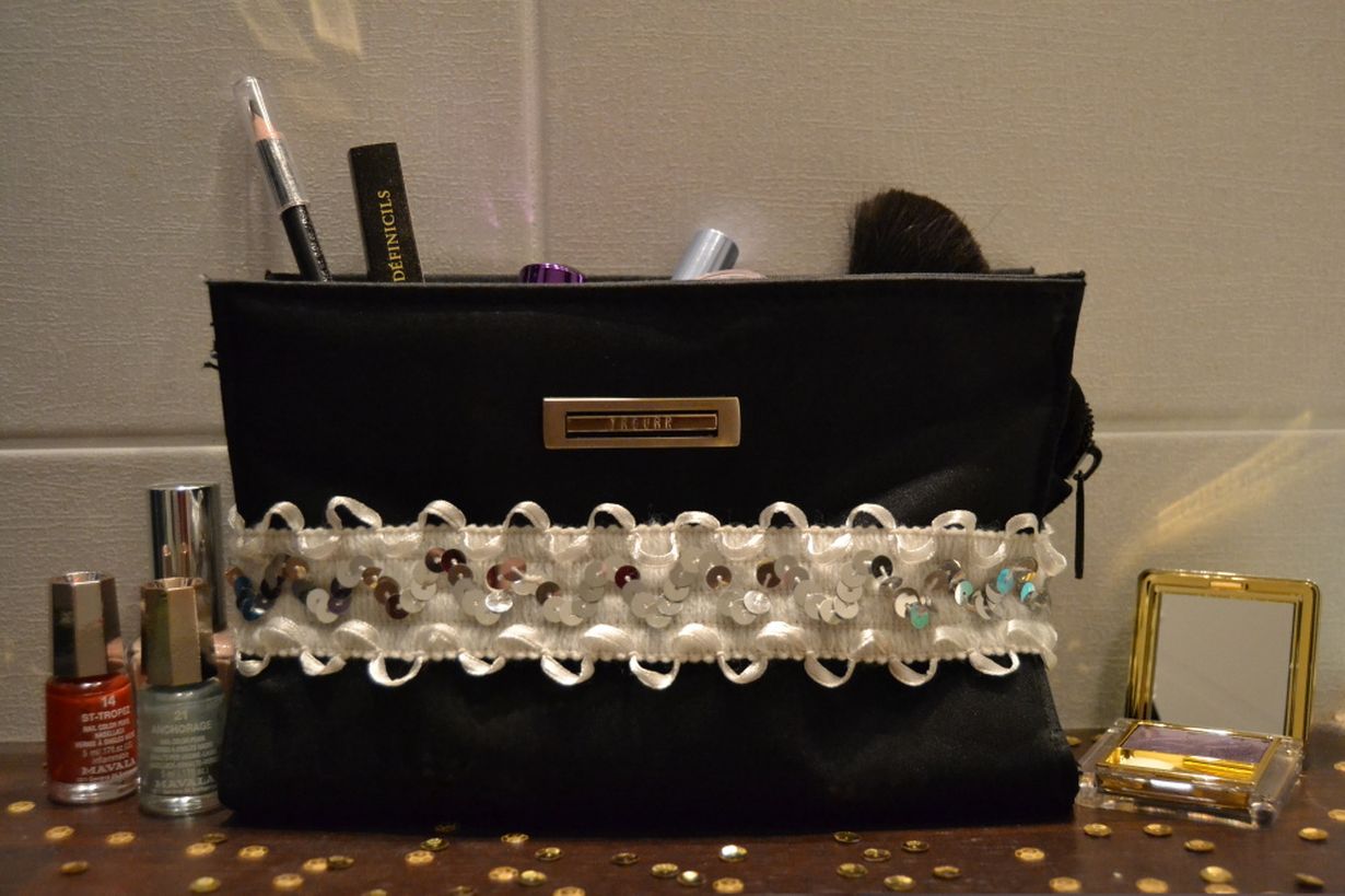 Tässä iki-ihana meikkipussini! Olen tavallisen mustaa meikkipussia tuunannut valkoisella paljettivyöllä ja saanut siitä näin itselleni päivää piristävän pussukan. Varmasti samanlaista ei joka tytöltä löydy!