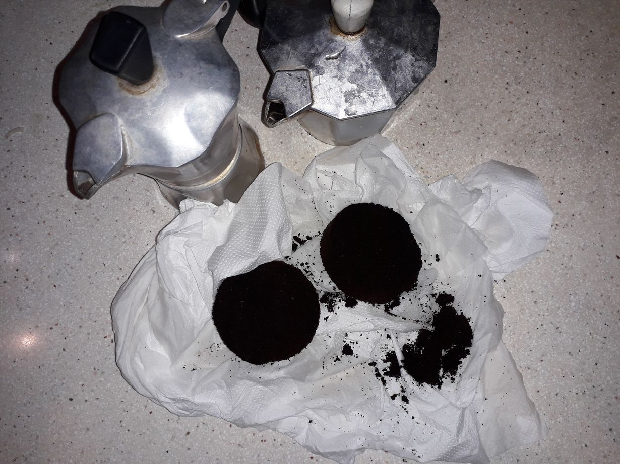Tyhjentelin iltana eräänä mutteripannujen kahvinporoja talouspaperipalan päälle ja melkein pelästyin: Hui, haamu!!!