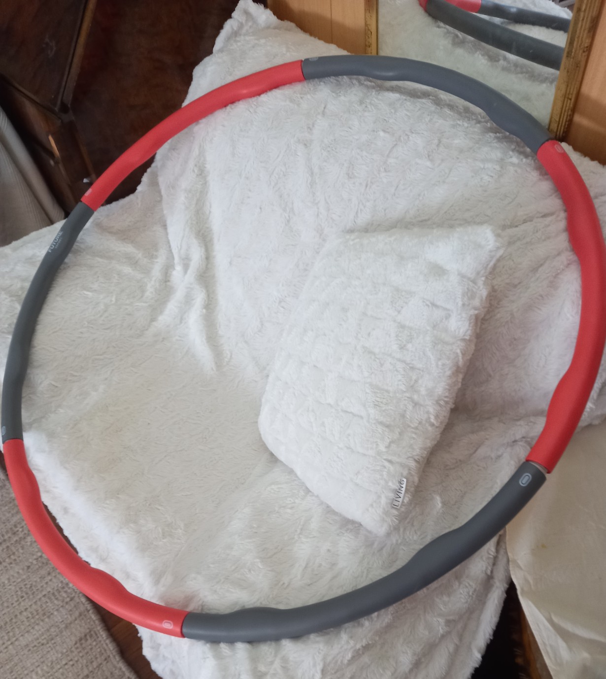 Rakkain harrastusvälineeni on painotettu hulavanne. Vastoin uutisia vyötäröni ei ole kaventunut - lisää on tullut muutama sentti. Hulaaminen on silti kivaa, ja vaikuttanee joihinkin sisäelimiin myönteisesti.