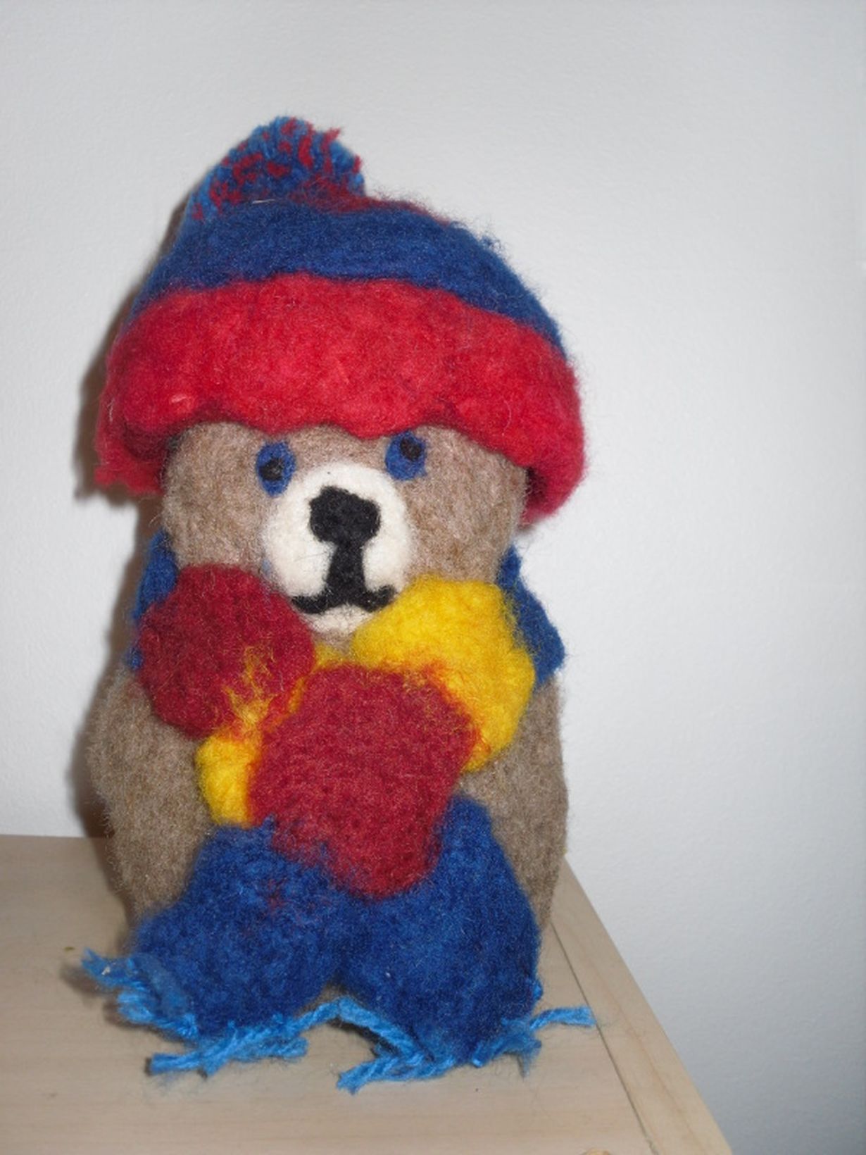 Olen itse tehnyt tämän nalleni huovuttamalla.