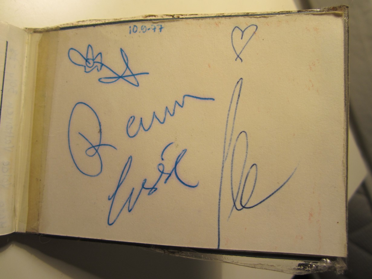 Olin 16v. kun menin kaverin kanssa Hurriganesin keikalle Pöytyän Kisariiheen 10.9.1977. Keikka oli aivan mahtava ja keikan jälkeen pääsimme takahuoneeseen juttelemaan ja nimmareita hakemaan. Ganesin pojat olivat tosi mukavia. Nimmari on teinikalenterin takasivulla.