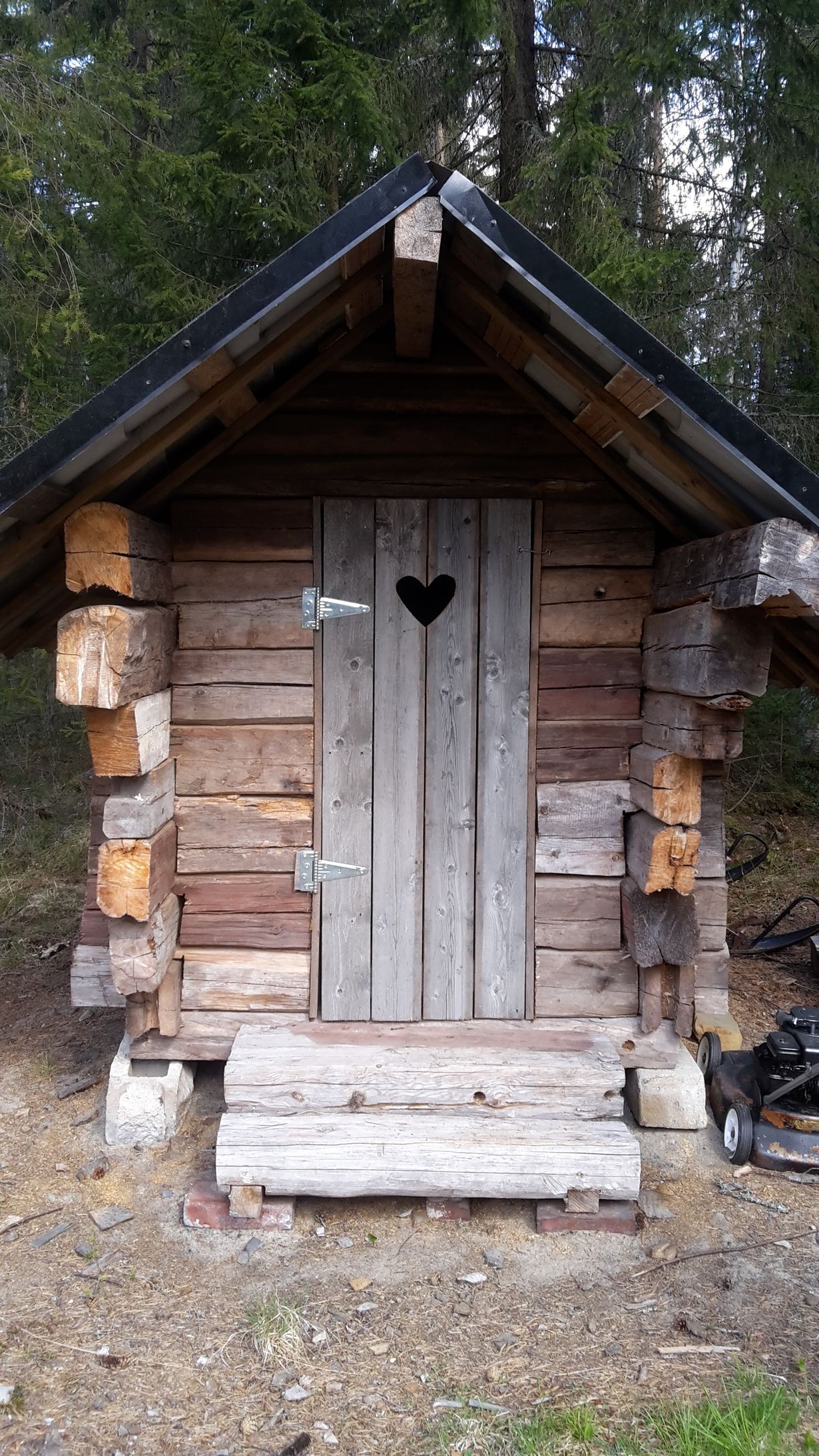 Huvilan huussi on häälahja toisillemme. Rakensimme huussin mökin pihamaalle vanhoista hirsistä häälomallamme. Rakennusprojekti oli hyvä alku yhteiselle taipaleellemme.