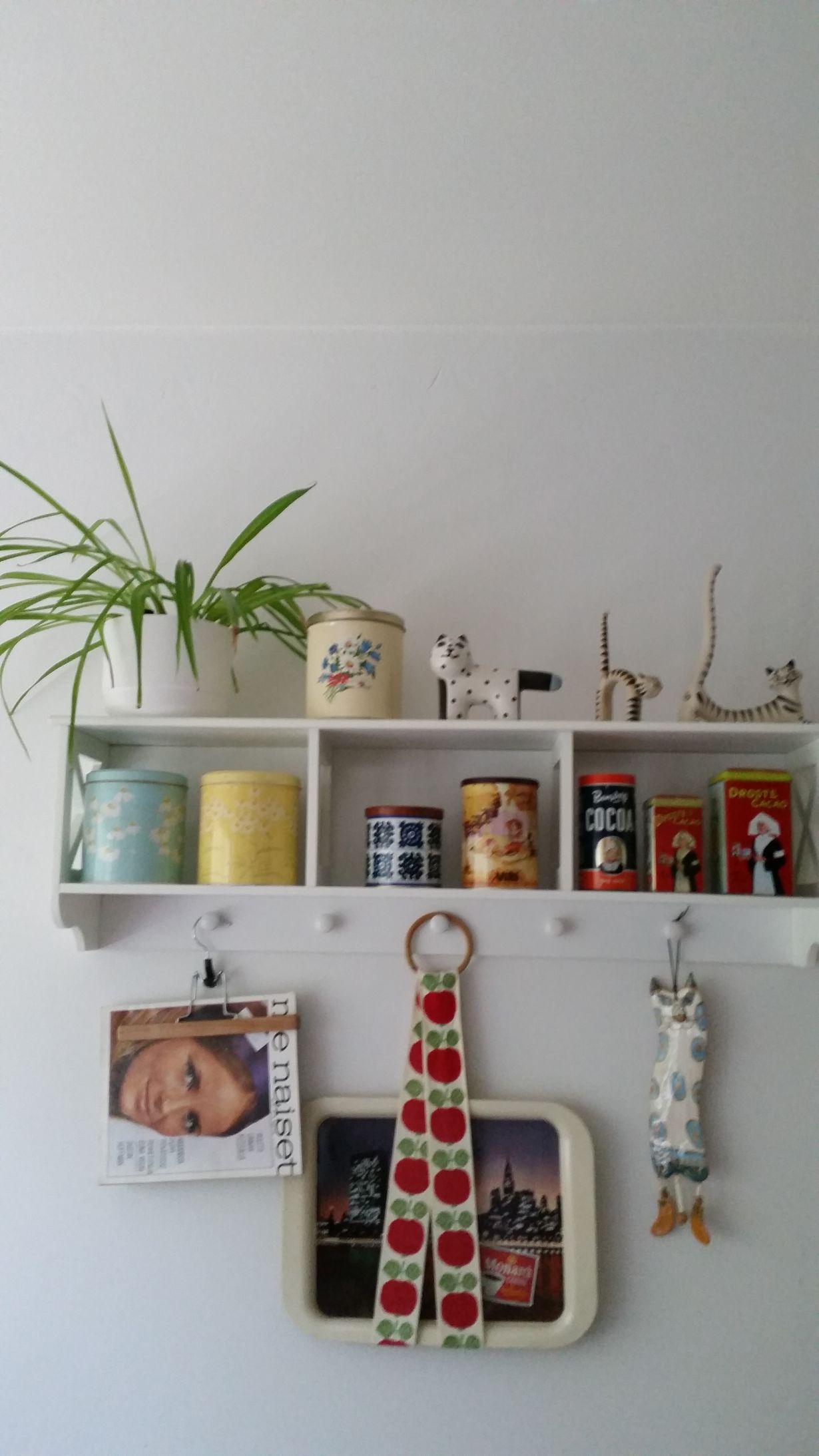 Keittiössä oleva hyllyni, jonka sisustus vaihtuu aina fiiliksen mukaan.