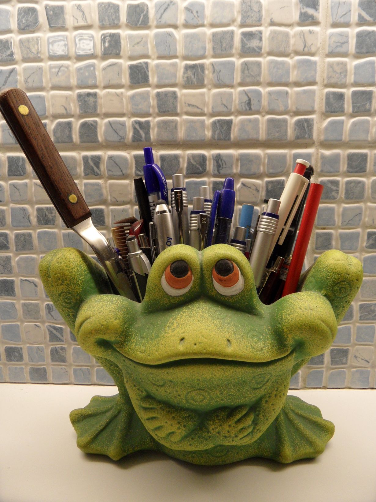Kynäpurkkinakin sammakko, tietysti. Yksi sammakko noin viidestäsadasta.