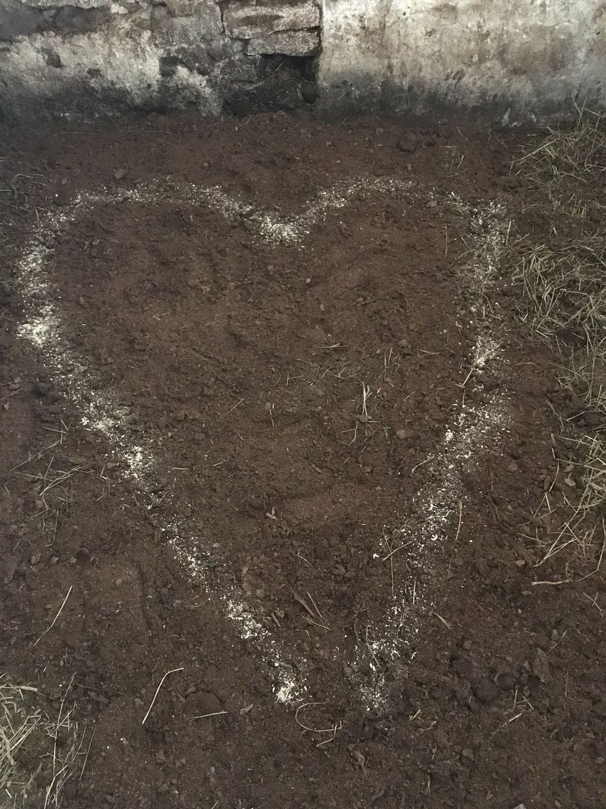Yhtenä iltana ratsastustunnin aikana yhden oppilaan äiti oli tehnyt tyttären lempihevoselle ihanan nukkumapaikan karsinaa. Puruista sydän ?