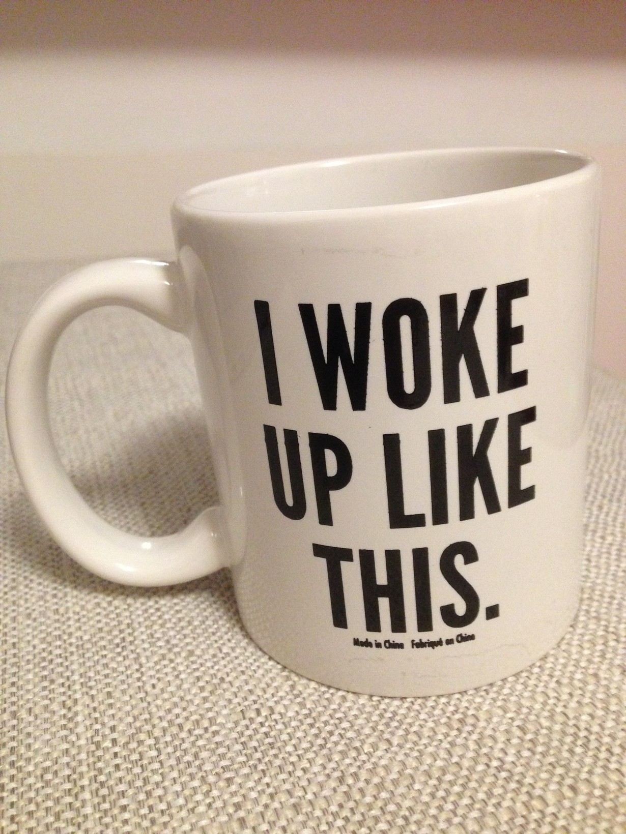 Juon tästä mukista joka päivä aamukahvini. Se on tuliaislahja kaveriltani Amerikasta. Beyoncen lyriikoita lainaten "I woke up like this..flawless" muistuttaa siitä, että heräsin virheettömänä ja tästä tulee hyvä päivä!