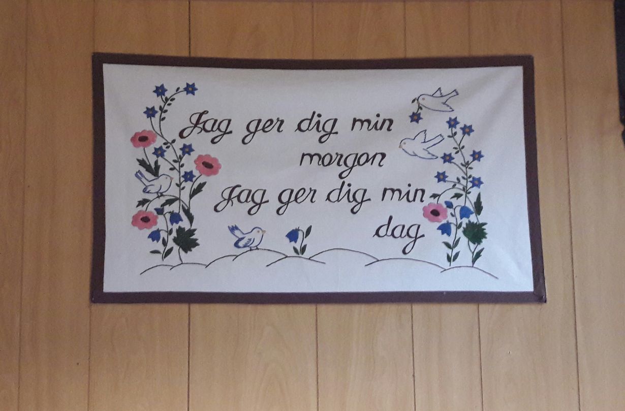 Tämä seinävaatteen lause on minulle rakas muisto edesmenneen ruotsalaisen laulajan esittämästä laulusta ja halusin kirjailla tuon kauniin lauseen seinälleni.