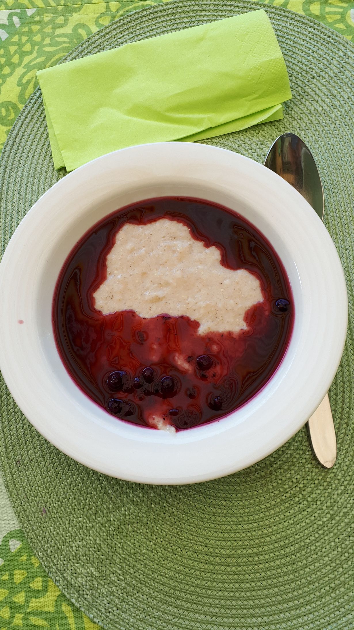 Vanha kunnon kaurapuuro mustikkakiisselin kera.