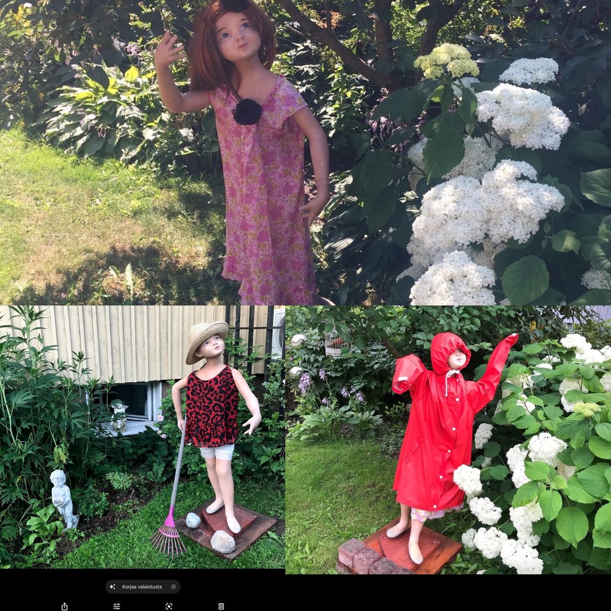Ahkera puutarha tyttöni Alisa ! Sää kuin sää Alisa puuhastelee, mm kirsikkapuun vahtina , huiskuttelee tervehdyksiä ohikulkijoille ja haravoi