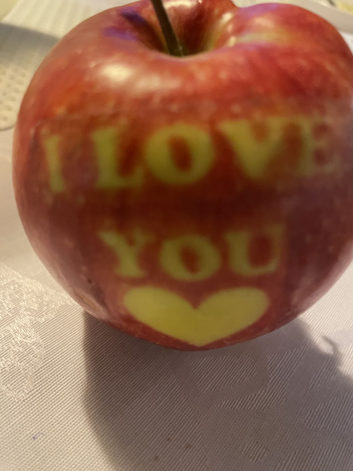 Ollaan oltu yhdessä lukioajoista asti. Nyt ollaan eläkeiän kynnyksellä. Kuvan mukainen omena odotti minua kerran pöydällä tullessani kotiin töistä. Rakkautta vai mitä? Nm. Käymme yhdessä ain