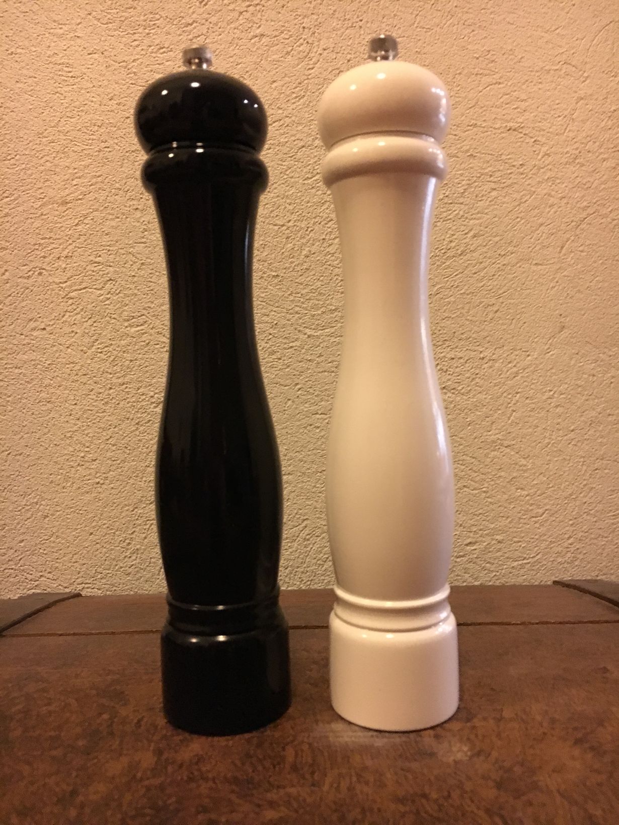 Meillä suola- ja pippurisirottimien virkaa toimittaa kätevät myllyt, jotka kelpaavat niin kokin käteen kuin ruokapöytäänkin. Olen antanut nämä kokkaavalle puolisolle lahjaksi.