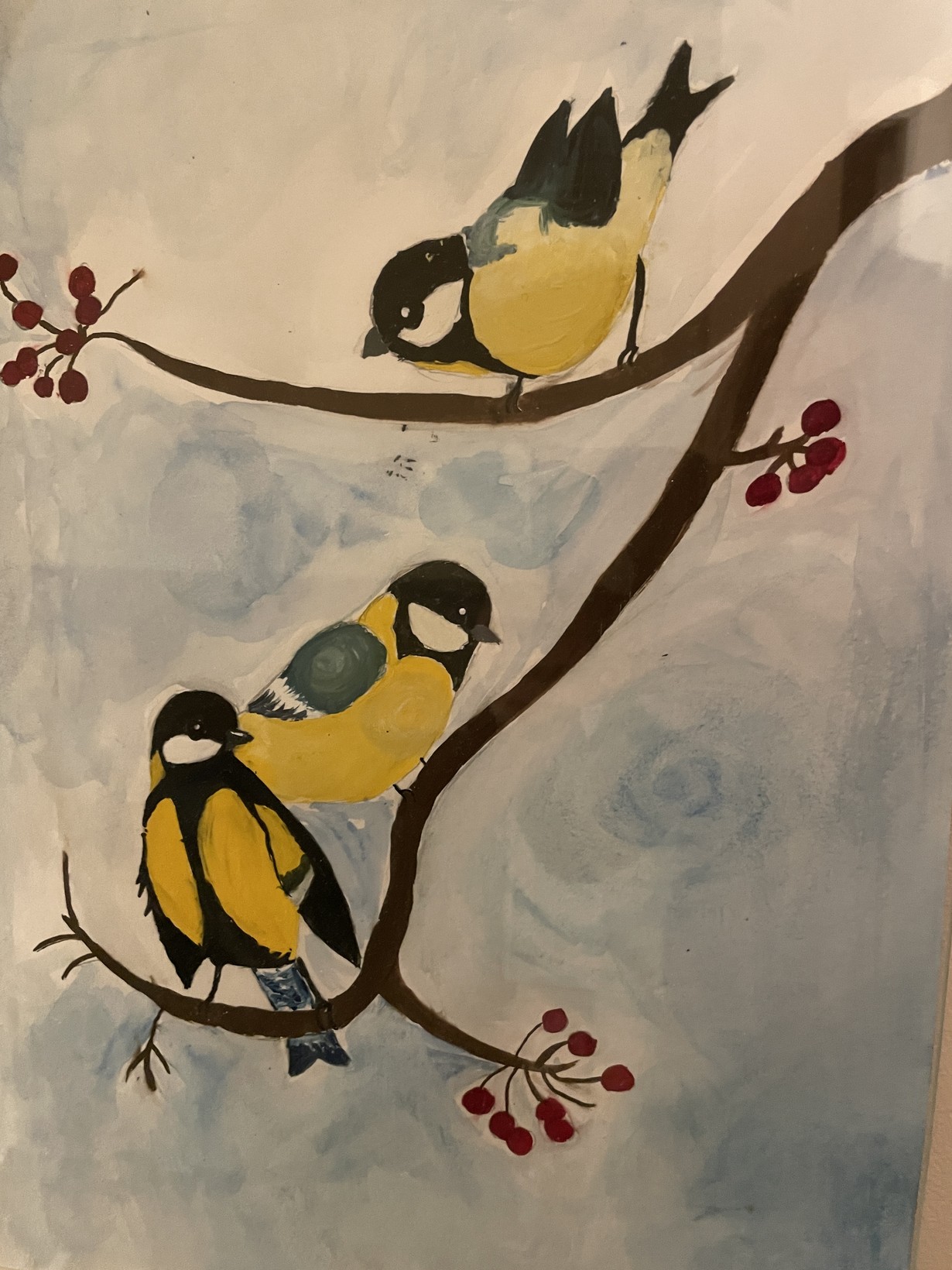Kuvassa lapsenlapseni maalaama taulu n. 10-12-vuotiaana. Hän on kokenut elämässään jo monenlaisia rankkoja elämänvaiheita. Tämä maalaus seinälläni ilahduttaa päivittäin.