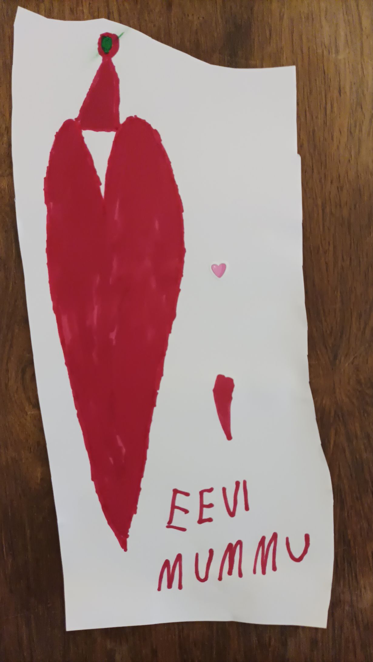 Tämä kuva kertoo paljon 5 vuotiaan Eevin yökyläilyistä mummun luona.