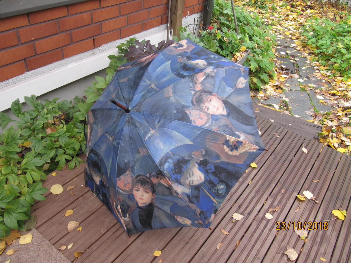 Lempisateenvarjoni on ostettu 20 vuotta sitten National Galleryn museokaupasta Lontoosta, aihe on Renoirin maalauksesta The Umbrellas. Tallessa on onneksi säilynyt vaikka koko ajan pelkään unohtavani sen jonnekin.