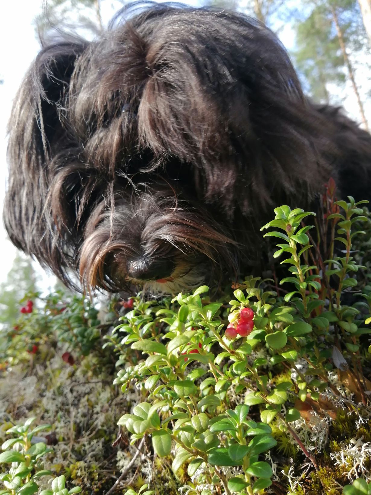 Tako on 5 vuotias havannankoira. On hauskaa kulkea yhdessä parhaan mahdollisen kaverin kanssa puhtaissa Kainuun metsissä ja seurata kuinka marjat häviää parempiin suihin😋.