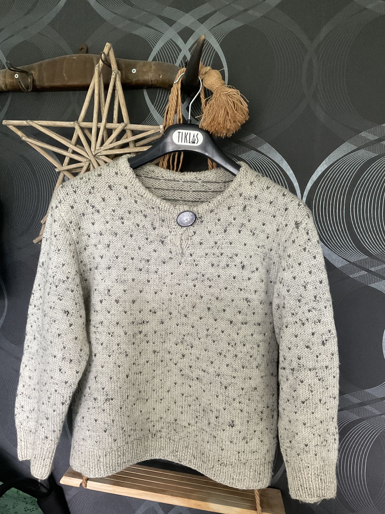 5 matematiikka numerolla ei vaativampaa kirjoneuletta syntynyt yli 30 vuotta sitten😉Rakas itse tikkaamani (murresana neulomiselle meilläpäin) villapusero on edelleen käytössä varsinkin kylminä ja kosteina syyspäivinä. Sininen rintaneula on aina paikoillaan, kun sopivaa nappia ei aikanaan löytynyt😁 Tuuletus riittää pesuksi ja nyppyjen poisto. Villa on aina villaa.