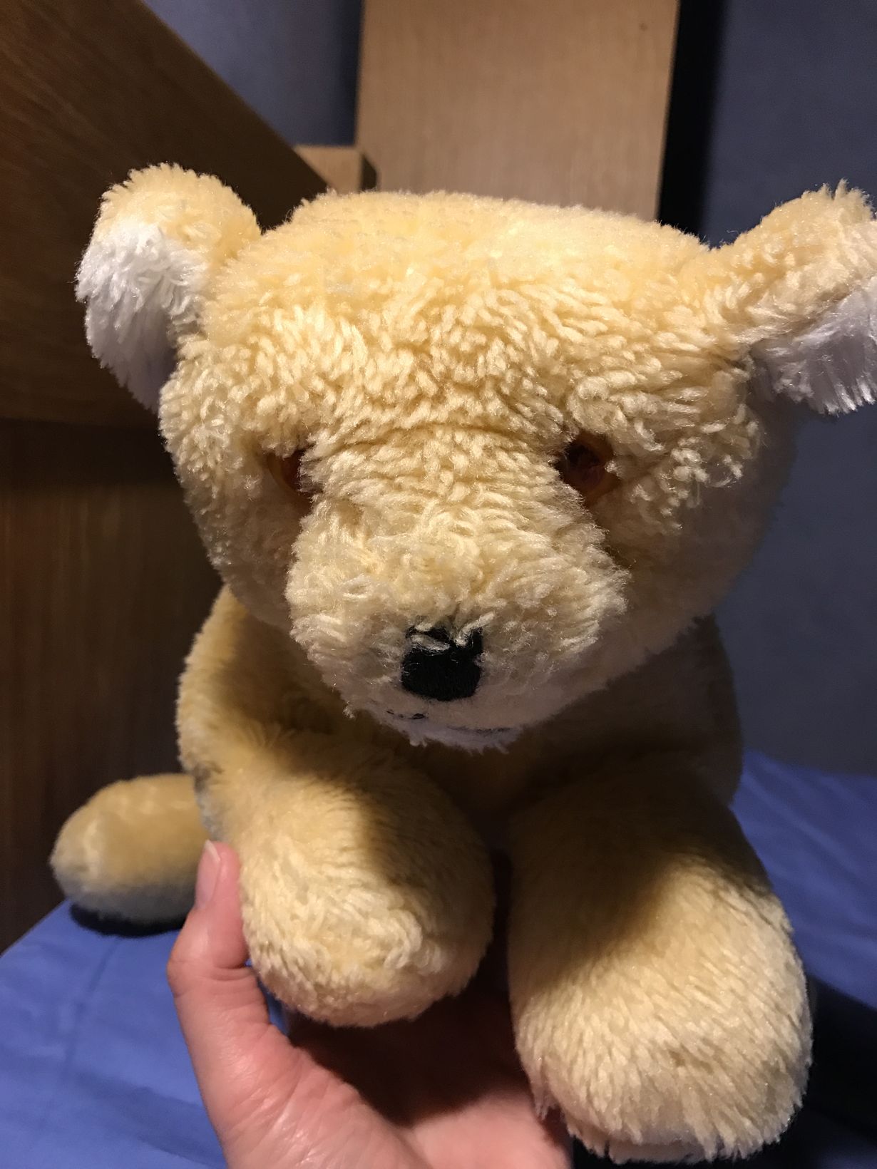 Hei, tämä Elsa leijona saapui minulle jouluna-76. Kiukuttelin aluksi, koska olin toivonut pukilta sellaista isoa jättikokoista leijonaa. Viskasin lelun nurkkaan. Hetken päästä aloin sääliä leijonaa ja otin sen syliini. Siitä lähtien olemme olleet yhdessä. Vieläkin, jos tulee suru tai harmitus nappaan sen yöpöydältä kainalooni. Viikset tosin nyppäsin pois heti, koska ne pisteli nassuun :)