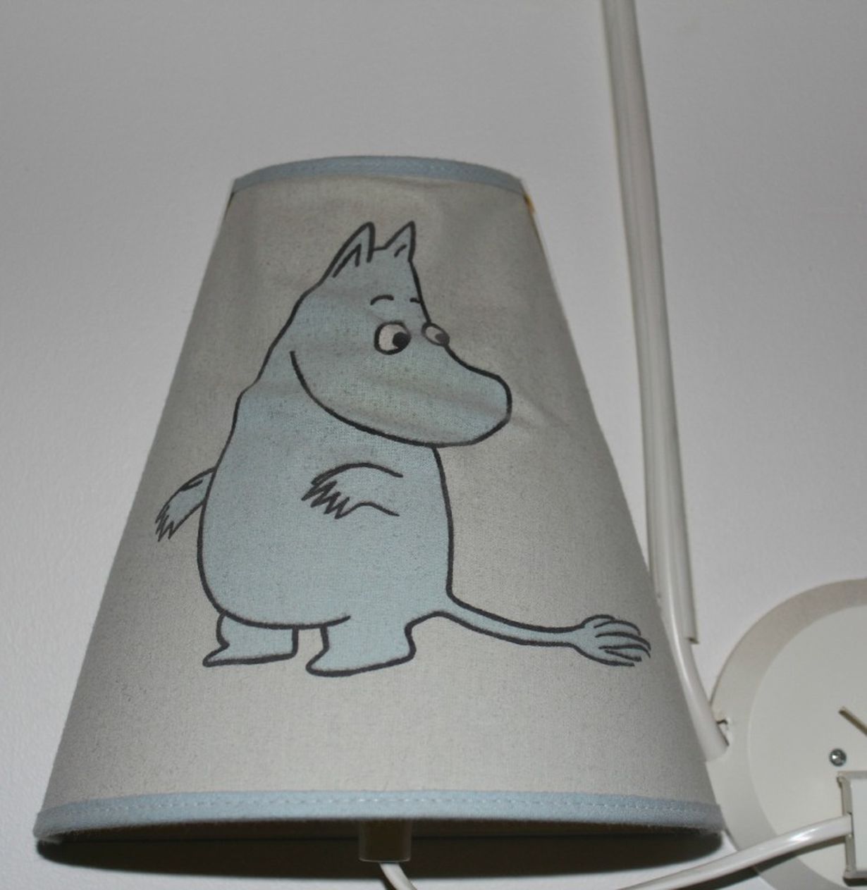 Lasten vaatehuoneessa on tällainen muumilamppu. Kun valot on poissa se näyttääkin ihan hyvältä, mutta kun sen laittaa päälle, niin huomaa, että muumi on puoliksi palanut. Silti tätä lamppua en koskaan heittäisi pois.