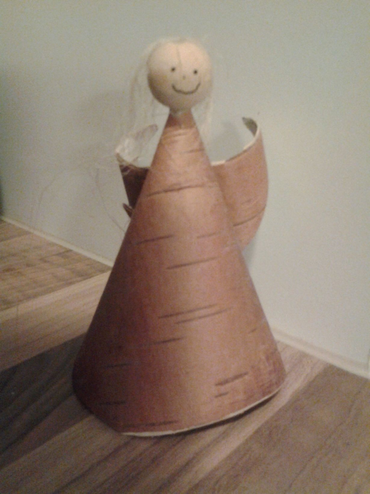 Mökillä kaadettiin iso koivu, sen tuohesta tein monta pientä arjen suojelusenkeliä.-pirki