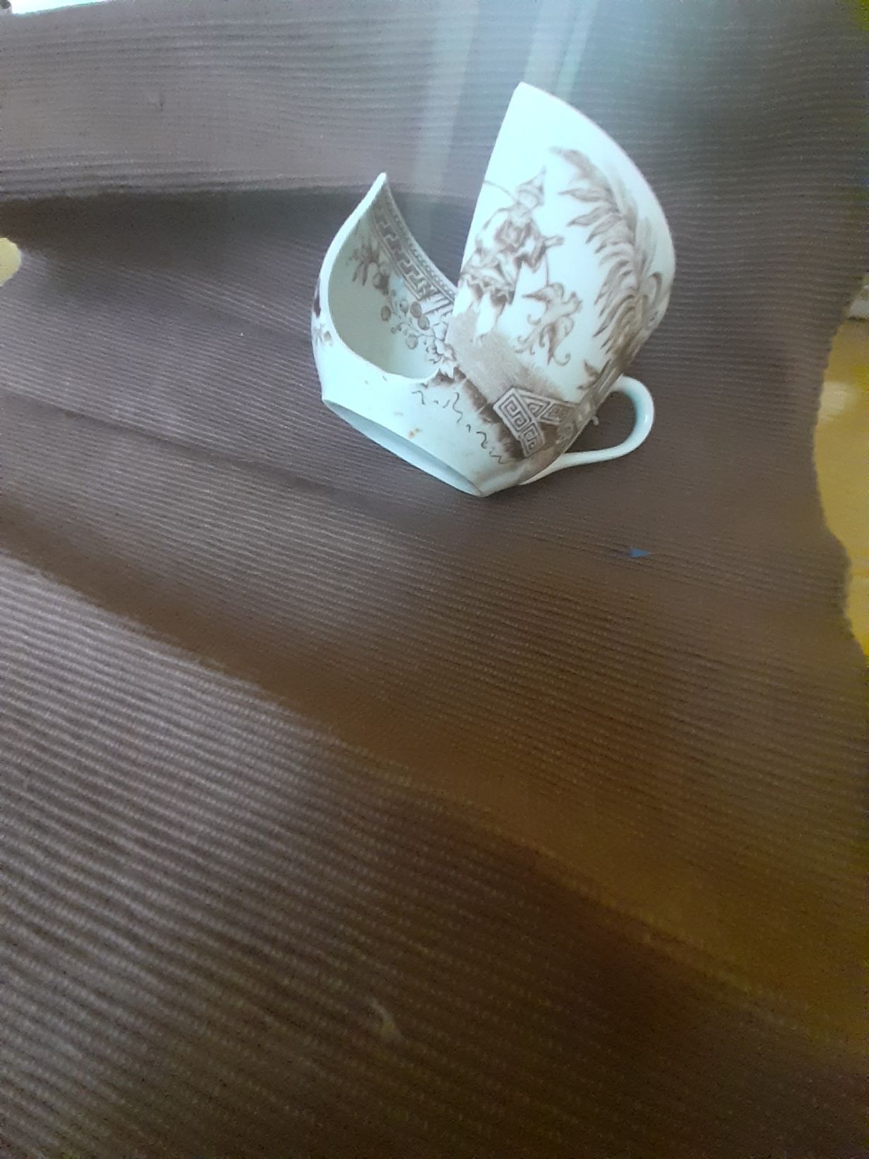 Arabian teekuppi: vaivalla hankkimani 6:sta teekupista yksi rikkoutui, kun astia hylly petti. Surettaa, kun hintakin oli aika kallis.