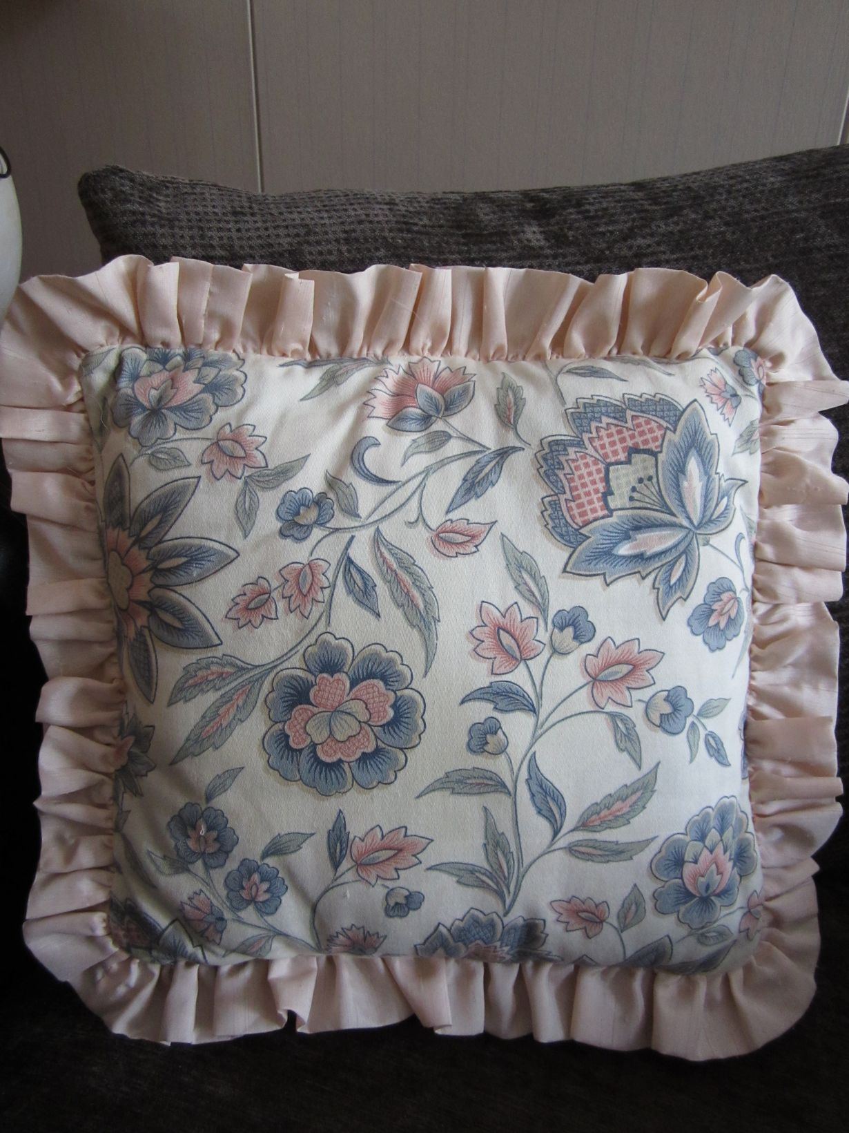 Rakas anoppini oisi täyttänyt eilen 100 vuotta.Hän ompeli meille aina kaikkea ihanaa, käyttäen jääneistä kangaspaloista taiteellisesti ja hyvällä värisilmällä kaikkea kivaa. Tällä sohvatyynyllä on myös kaksoissisar, jotka pikkusohvallamme kuiskuttelevat "ajan tuon mennehen"- juttuja.