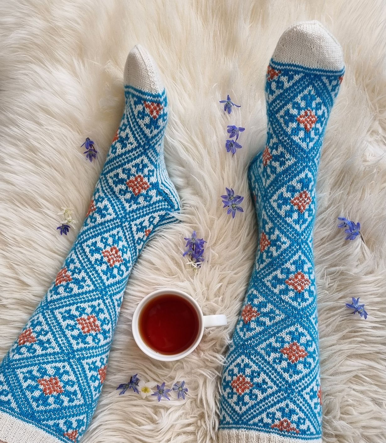 Näitä Lumi Karmitsan suunnittelemia Istanbulin aamuja neuloin kuin Iisakin kirkkoa rakennettiin, pitkään ja hartaasti. Siksi ovatkin erityisen rakkaat. Näitä käytän vain parhaissa hetkissä.