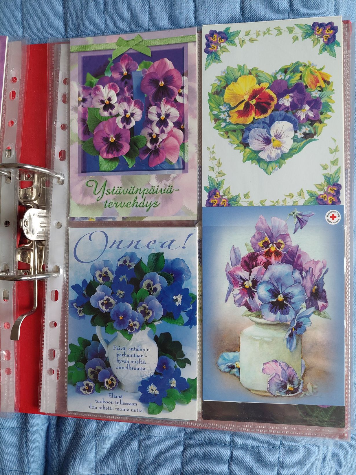 Minulla on mapissa tallessa orvokki-kortteja monelta vuodelta. Orvokki on lempikukkani ja ystäväni sen tietävät. Näitä on mukava katsella, orvokkikortteja on paljon.