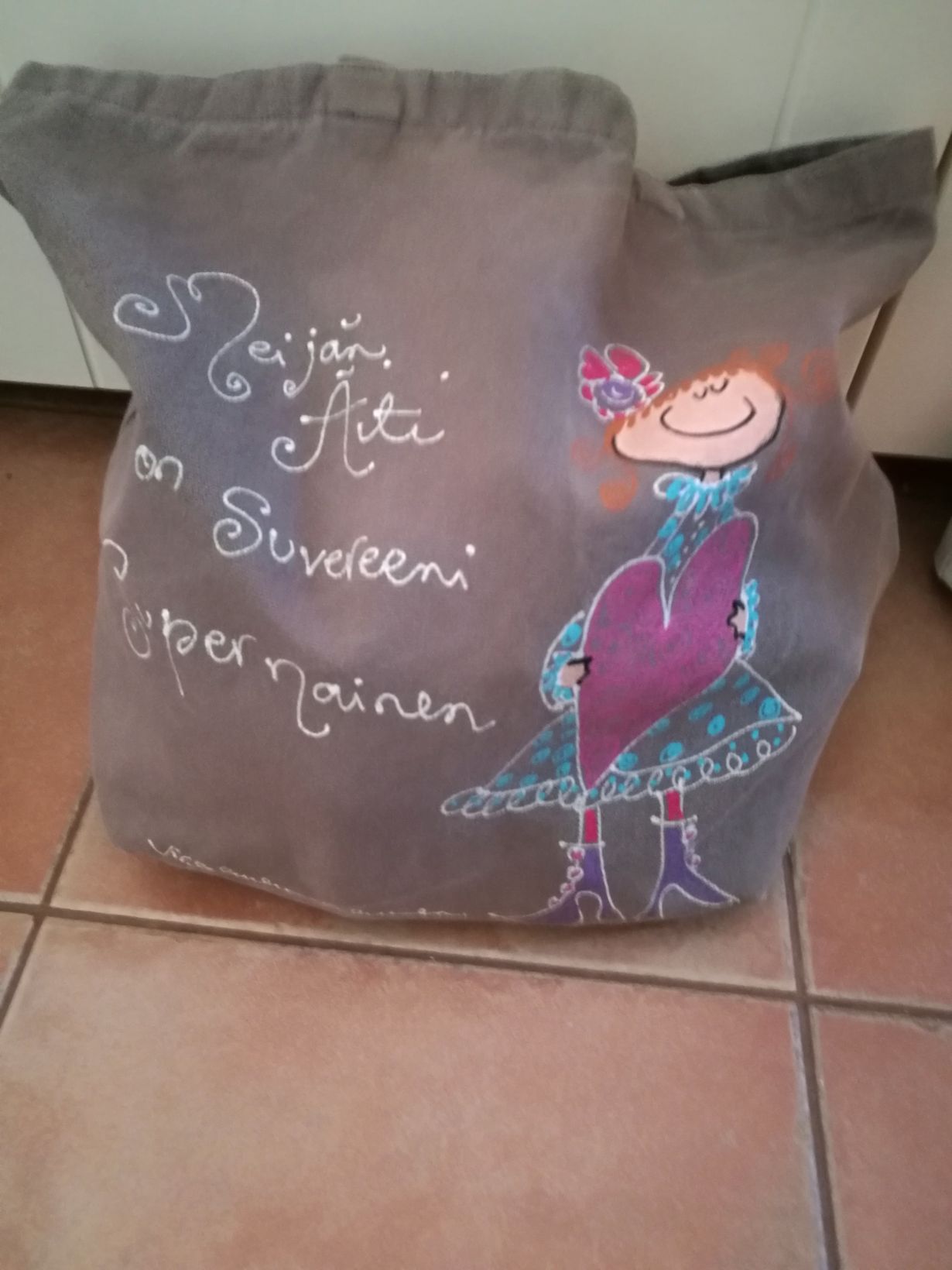 Sain tämän Virkkukoukkusen ihanan kauppakassin eräänä äitienpäivänä lapsiltani, he olivat nähneet minun ihailevan sitä ja yllätyksekseni olivat tilanneet sen minulle. Jokaisella kauppareissulla mukana, tärkeä ja kaunis kassi.