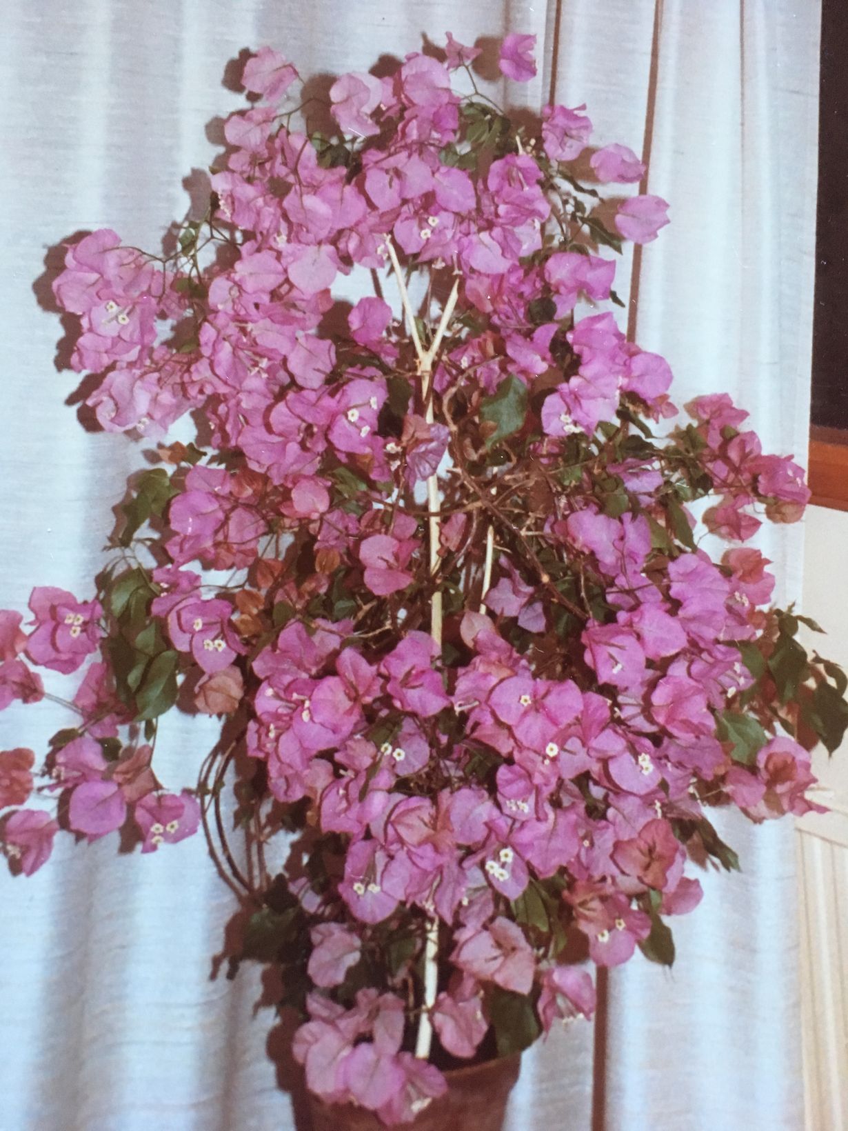 Äitini, joka asui naapurissamme hoiti ihmeköynnöstäni ja sai sen kukkimaan koko kesäksi. Olin itse kiireinen perheenäiti. Olohuoneessamme oli aurinkoinen paikka kukalle. Talvella kukka oli ihan ranka. Se pudotti sekä lehdet, että kukat ja kukoisti taas kesällä. Naapurit ja vieraat ihmettelivät kaunista kukkaamme.