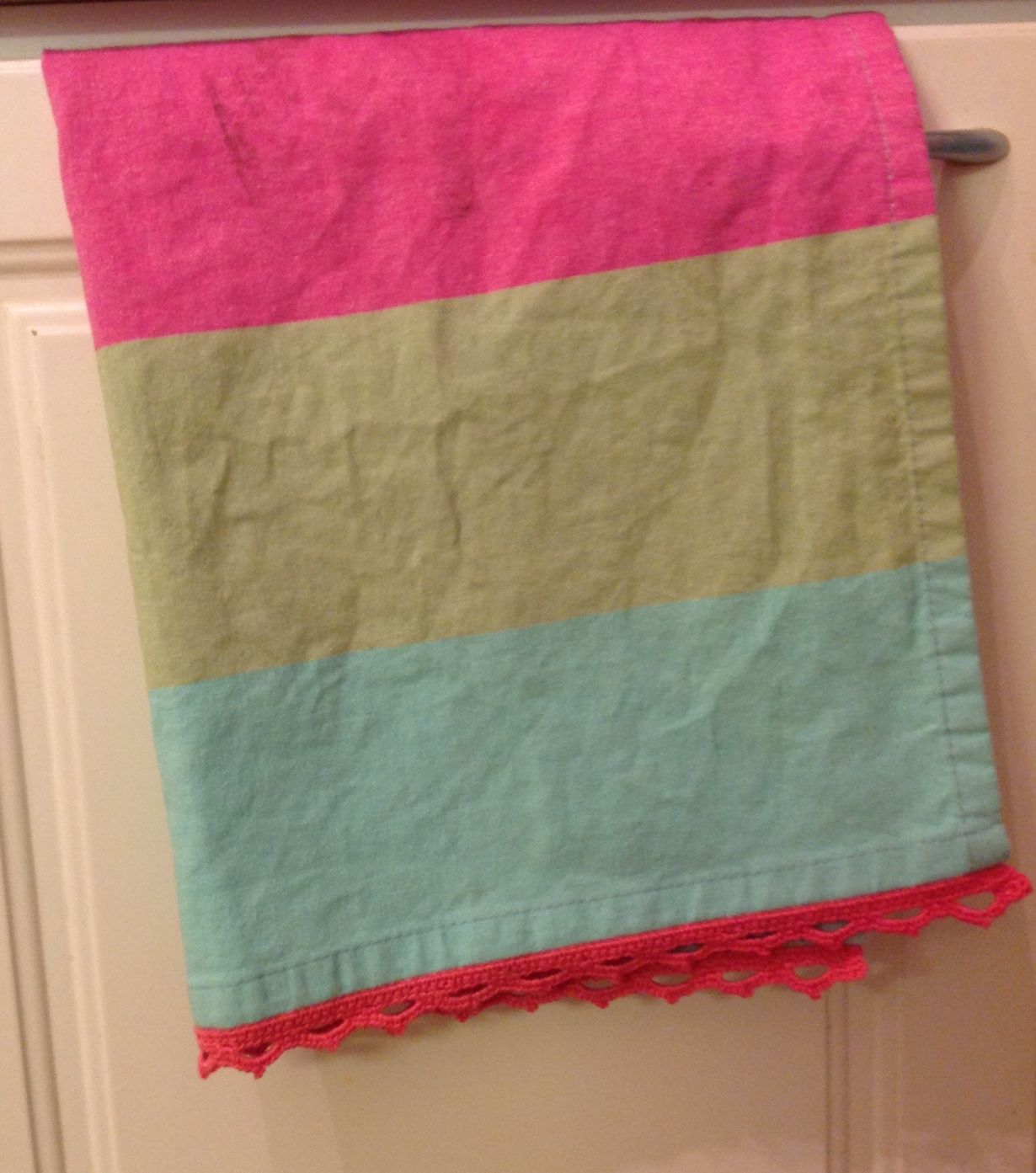 Tämä ihana arki: keittiöpyyhe Iloiset raidat 27.1.2014 klo 20:56 Iloisilla väreillä ja pitsireunalla piristystä keittiöön Kotikutoinen