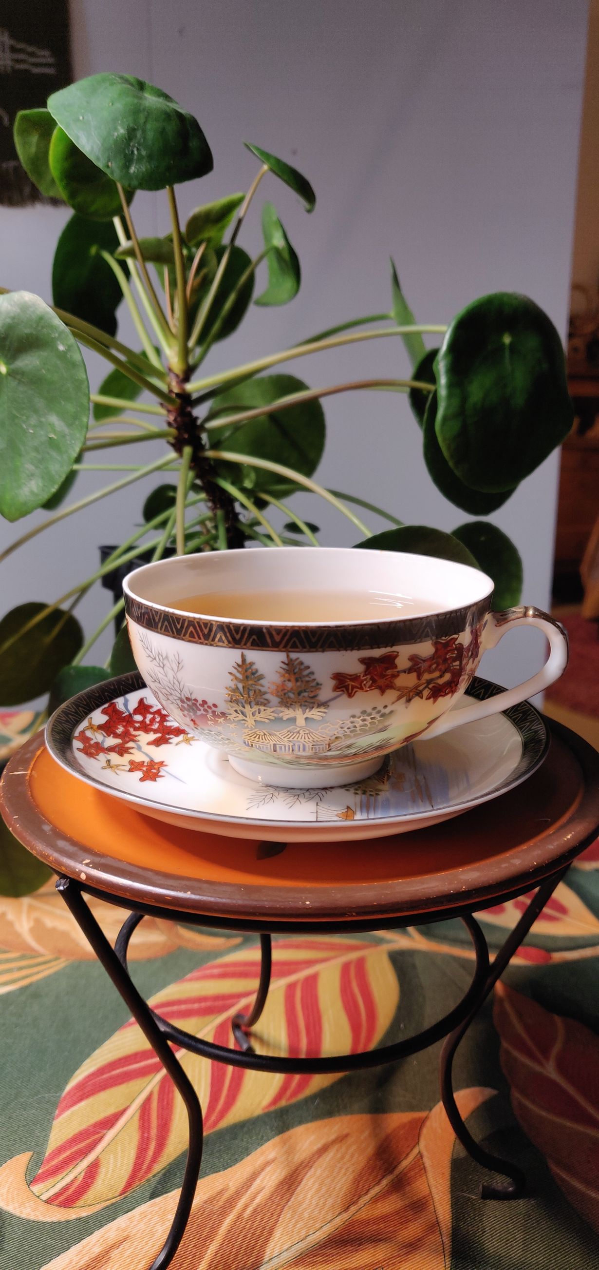 Poikani kirpparilta löytämä teekuppi ja siinä nautin iltateen.