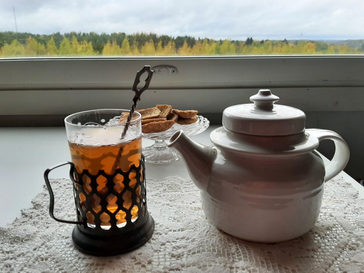 Teekannuja niinkuin mukejakin löytyy jokalähtöön. kuvan kannu kuuluu jokapäiväiseen käyttöön, mutta teelasi on käytössä silloin, kun on vieraita tai juhlan aihetta. Lasi ripoineen ja lusikkoineen on appiukon perintö, hän on saanut sen vuonna -74 lahjaksi 50 v syntymäpäivänään. Minusta teekin maistuu erilaiselle eri mukeista. En tiedä johtuuko muistoista vai mistä!