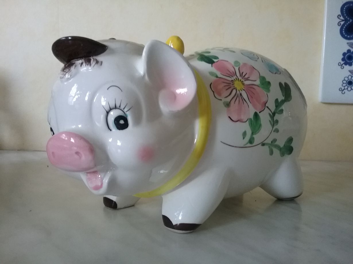 Äiti osti tämän minulle kun kirjoitin ylioppilaaksi. Siihen kerättiin kolikoita lakkiaisiin asti. Edelleen laitan sinne pääasiassa euroa pienemmät kolikot, on melko täynnä.