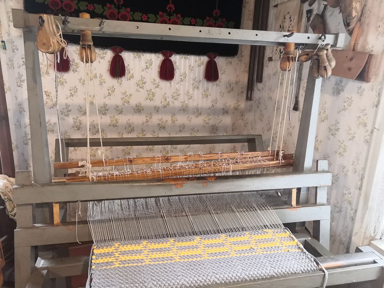 1800-luvun lopulla syntynyt isoisäni oli tehnyt nämä aivan ihan pyöräspuut siskolleen ja nyt minä kudon näillä noin 100 vuotta vanhoilla puilla mattoja.