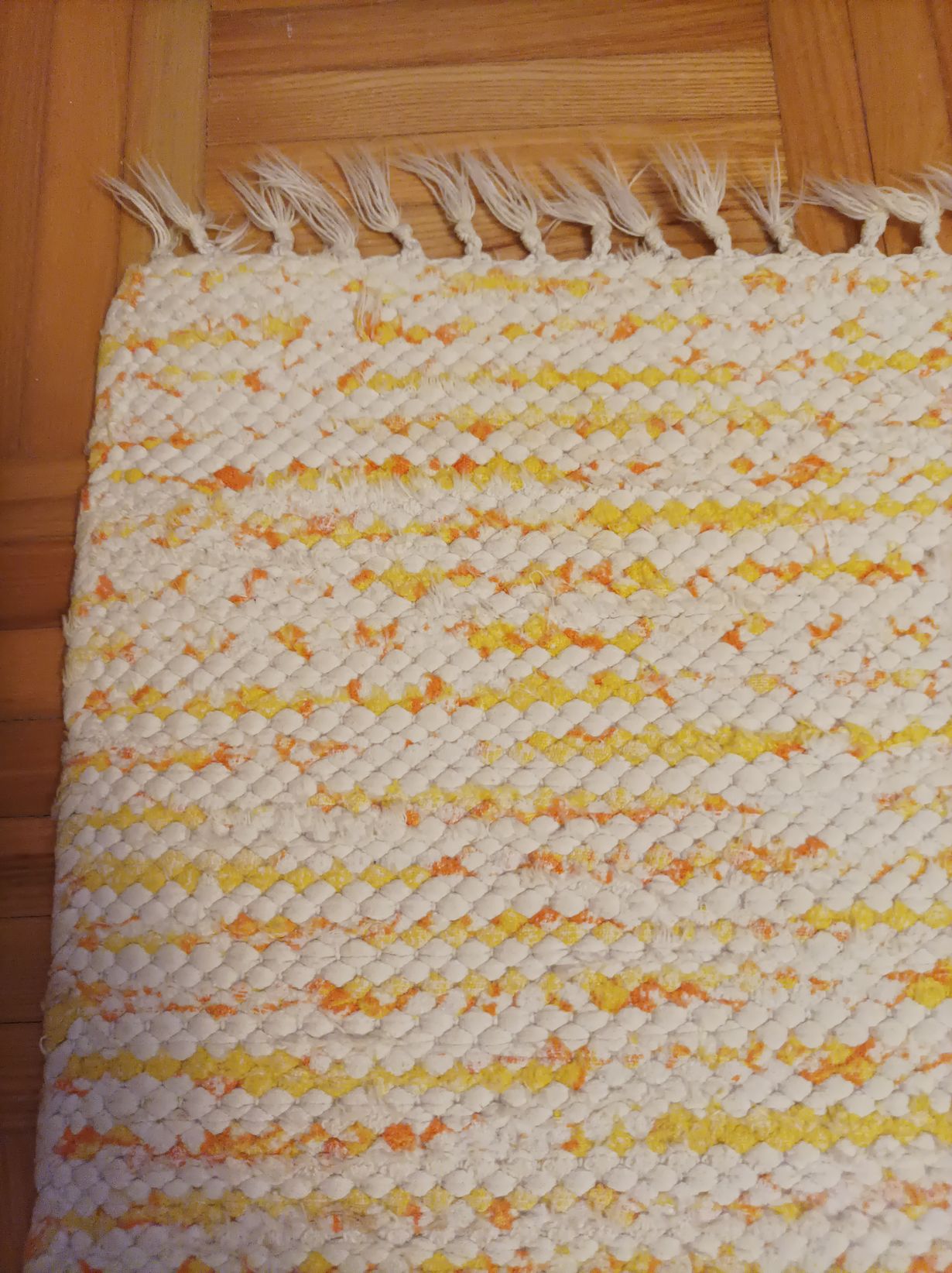 Isomummoni minulle tekemä matto alkaa näyttää jo aikaa eläneeltä, mutta värit ovat niin ihanat että matto saa pysyä lattialla kunnes on täysin riekaleina.