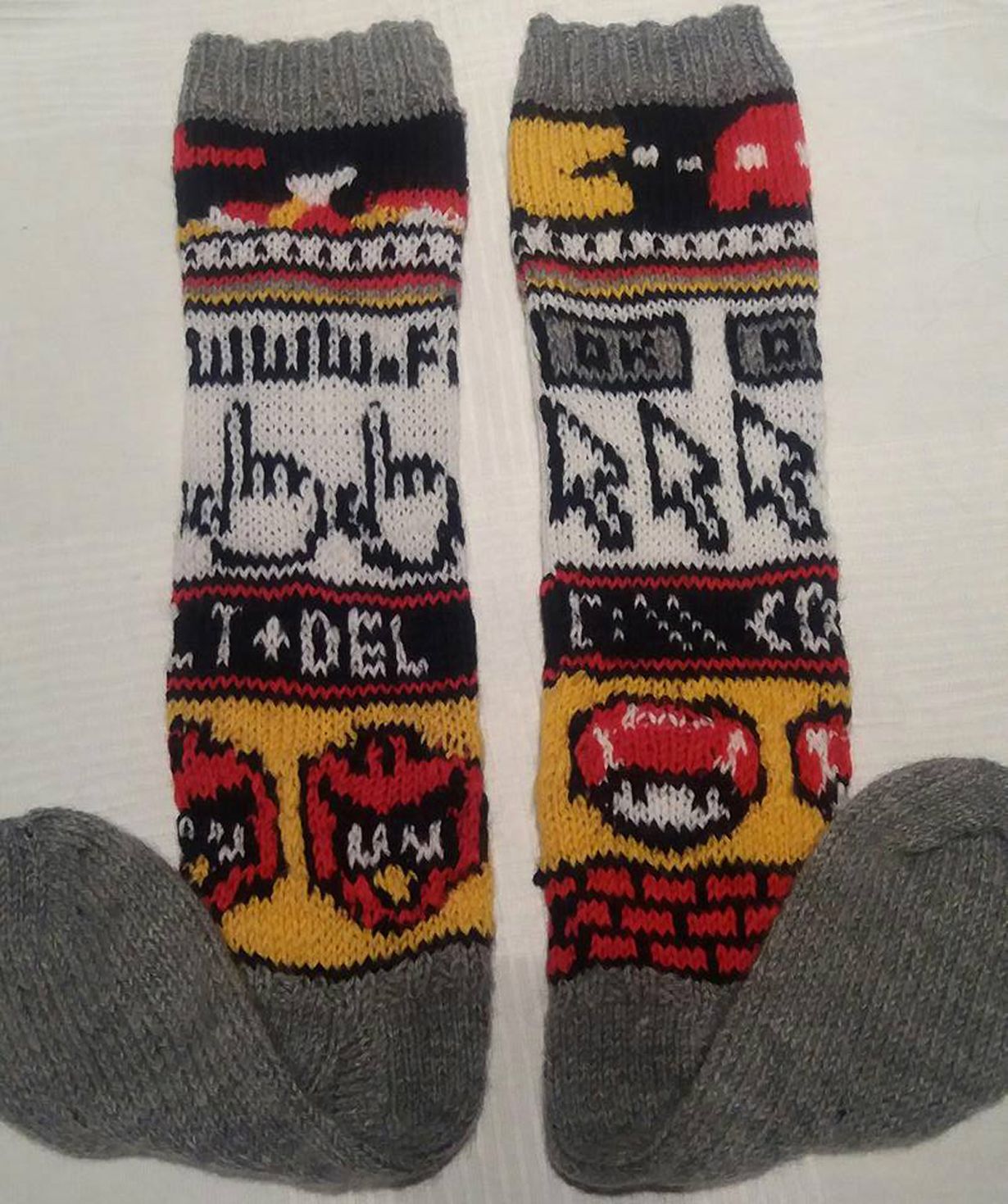 Tietotekniikan opettajana toimiva siskoni toivoi töihin villasukkia. Suunnittelin & toteutin tämän mediapajaympäristöön soveltuvan kirjoneulemallin.