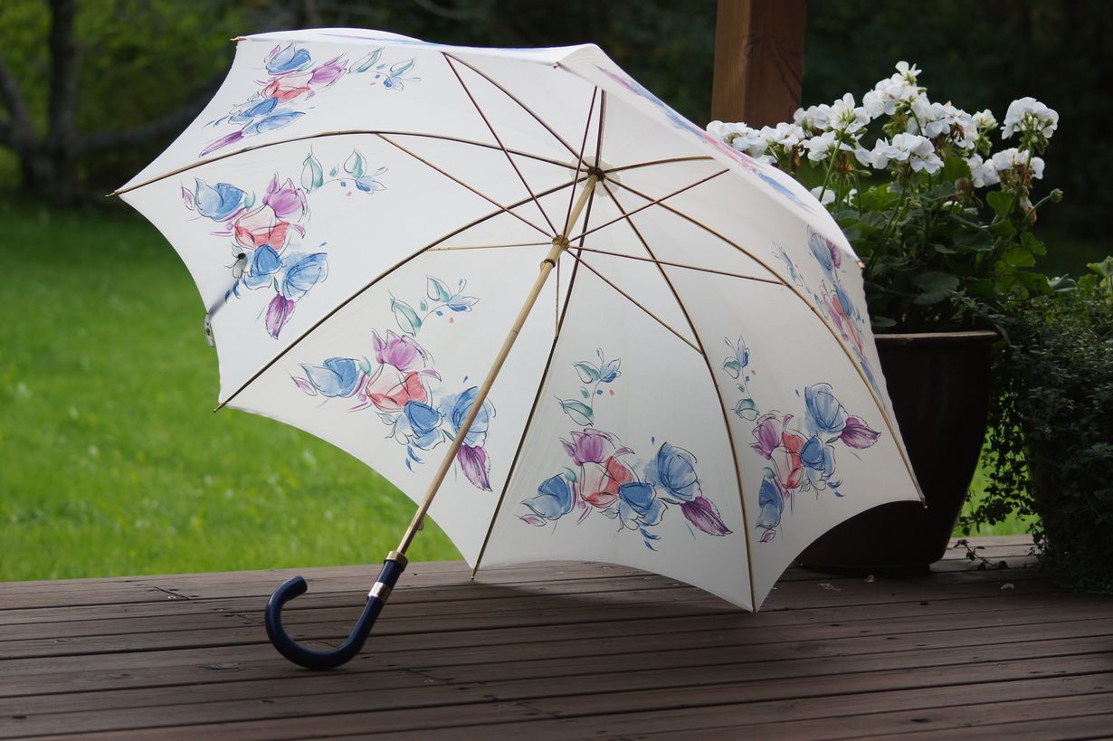 Sain varjon 90-luvun alkupuolella mieheni siskolta italiantuliaisena. Käytän valkoista varjoa vain juhlissa ja se on ollut lainassa kahdella morsiammella. Varjo on iso ja kaunis!