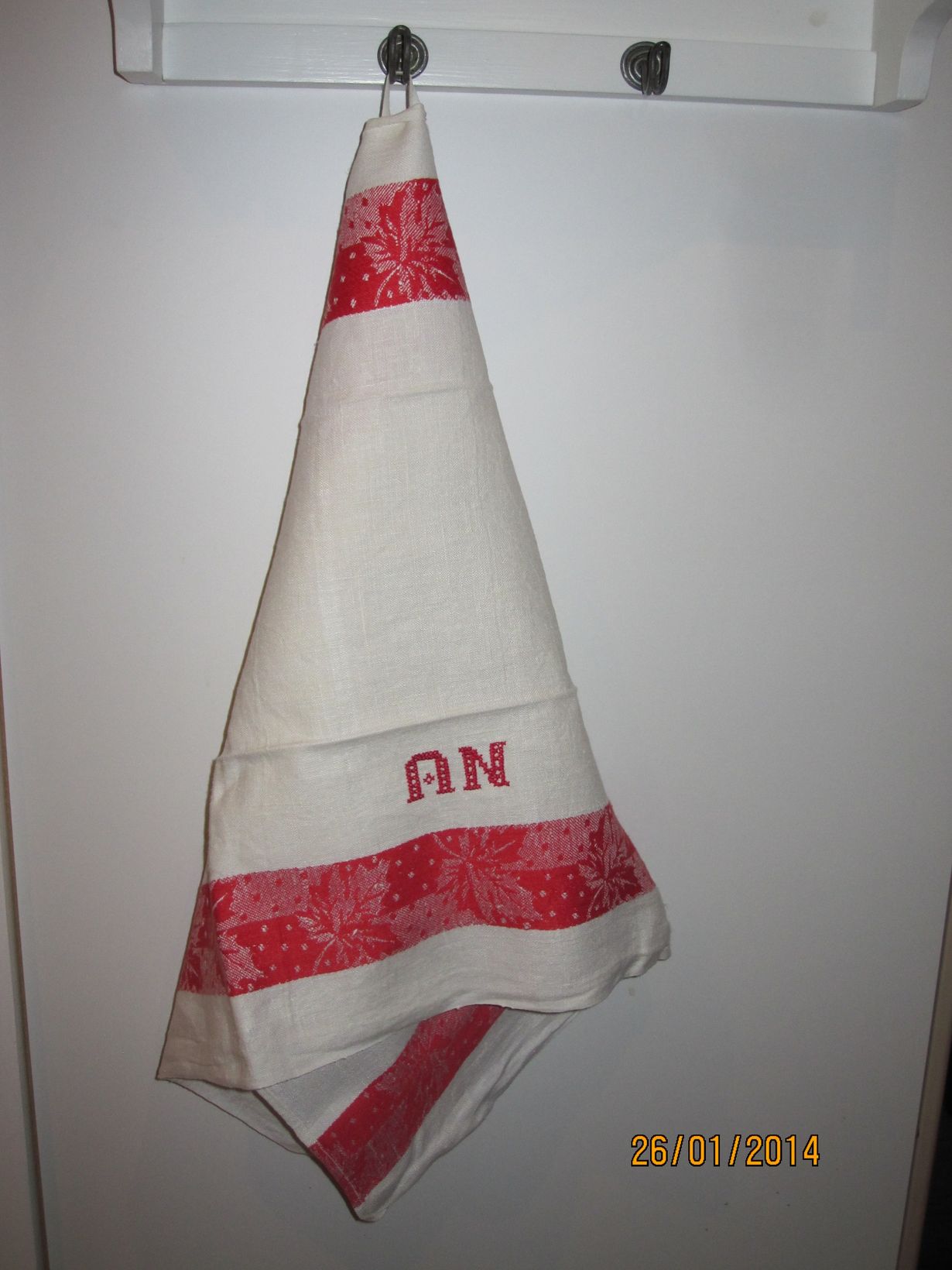 Äidille lahjaksi tehty pyyhe 60-luvulla. Nyt se on palutunut minulle.