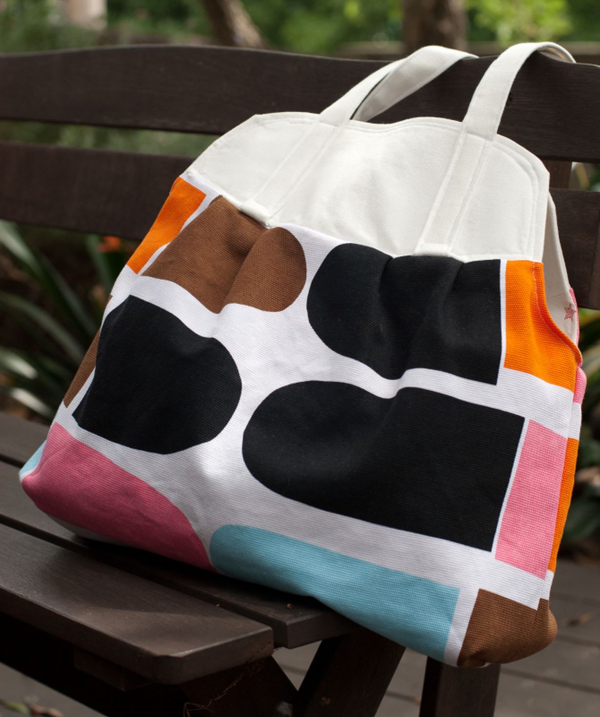 Ompelin itselleni marimekon "pikku jätski" kankaasta monikäyttöisen laukun. Tykkään kirkkaista väreistä ja siitä että laukkuun mahtuu vähän enemmänkin tavaraa.